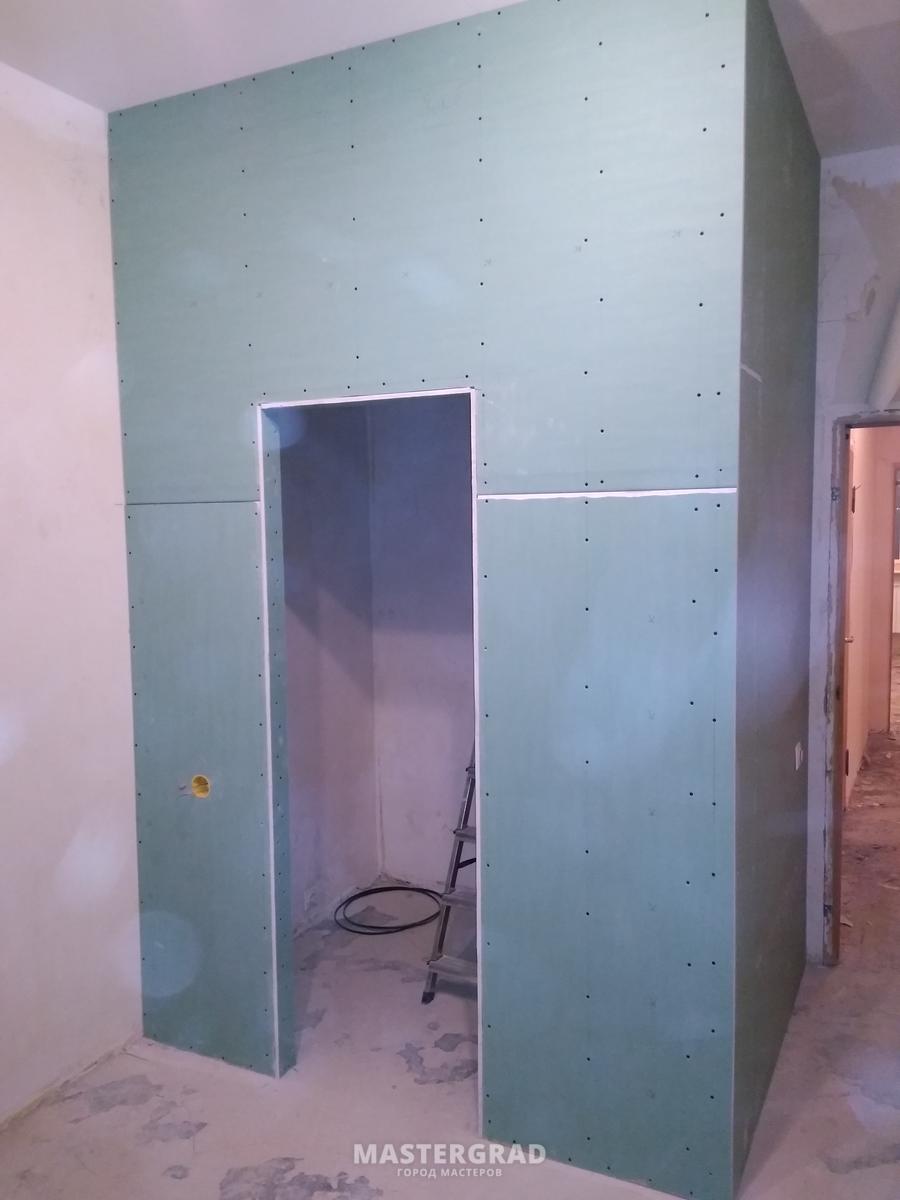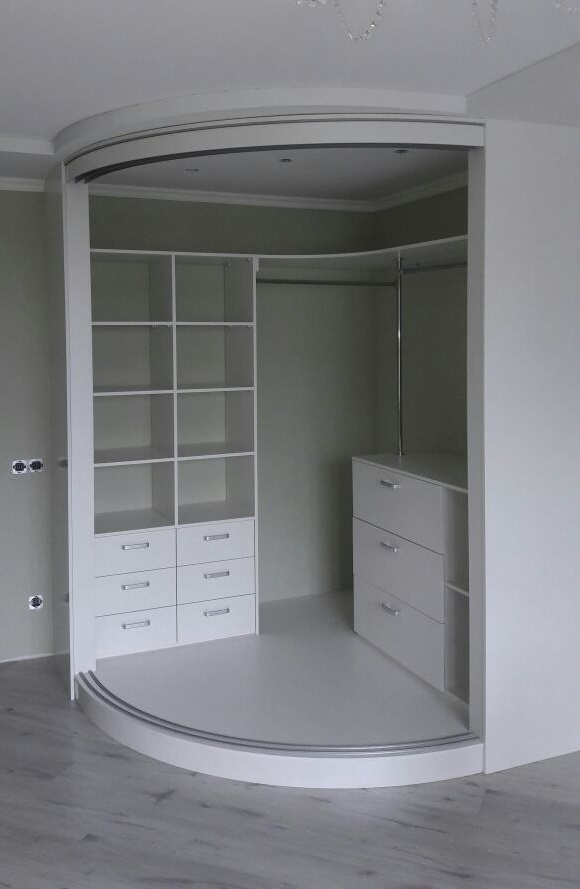 L'endroit le plus pratique pour elle est votre chambre.... S'il y a une petite niche ici, alors dans ce cas, un très bon dressing en plaques de plâtre sortira. Il est également possible d'équiper une pièce similaire dans le hall, si celle-ci est d'une superficie appropriée.