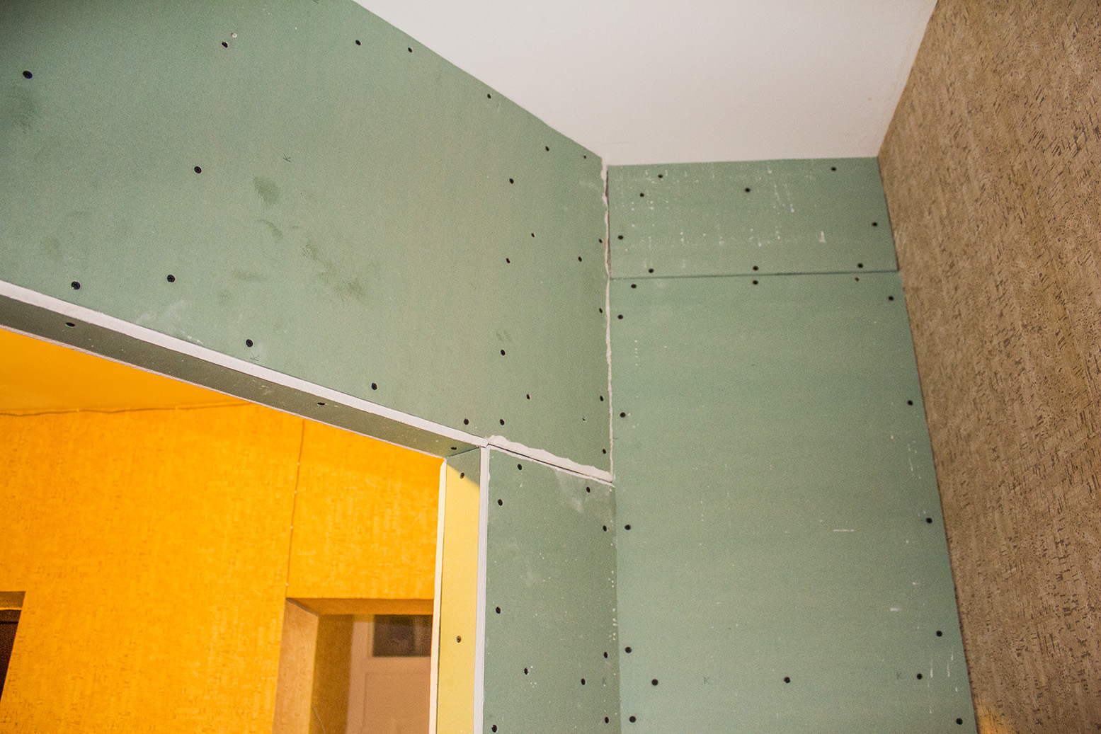 En conséquence, le dressing des cloisons sèches est traité avec du mastic et un apprêt. Et après il y a une belle finition, peinture ou papier peint. Mais avant cela, il est nécessaire de coller toutes les coutures sur la cloison sèche.