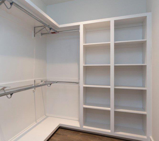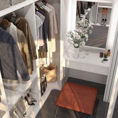 Noter que la taille minimale du vestiaire doit être de 1x1,5 m. S'il est complètement isolé, la ventilation est impérative. Lors de la conception de votre dressing, vous devez prendre en compte immédiatement le type de choses qui seront stockées et où afin de fournir les bonnes tailles de zones de stockage.