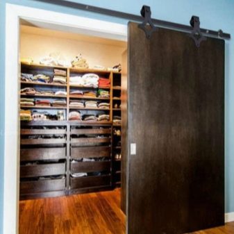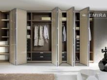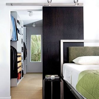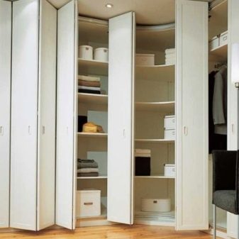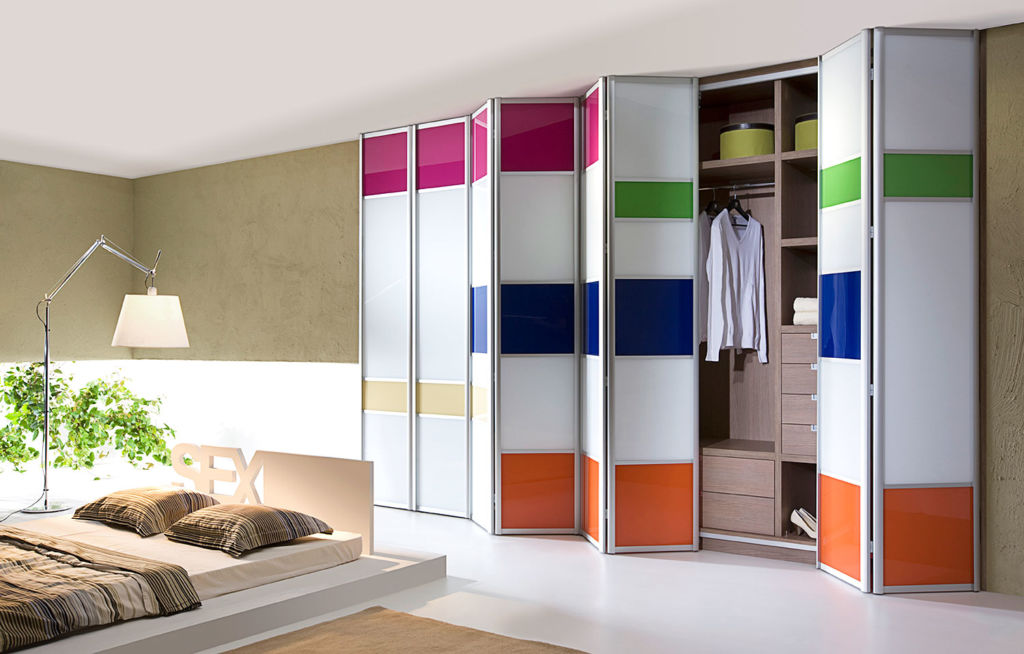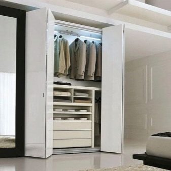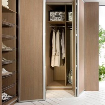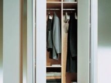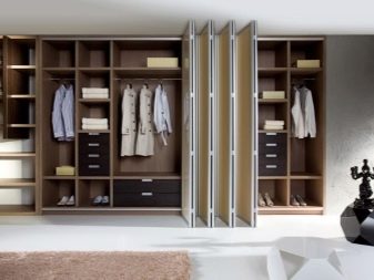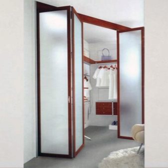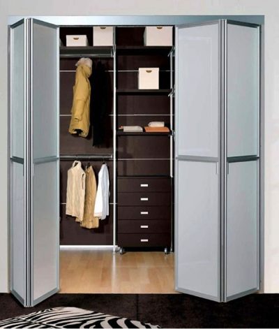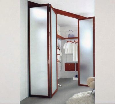 Même un dressing très compact vaut mieux qu'une armoire. Ce ne sont pas seulement des meubles, mais un coin confortable et pratique où toutes les choses, y compris les chaussures, sont rangées. Les portes pliantes vous permettent de trouver une place pour une armoire, même dans la plus petite pièce. Les portes coulissantes s'ouvrent du fait que la toile est poussée sur le côté. Il existe les options de conception suivantes pour de telles portes.