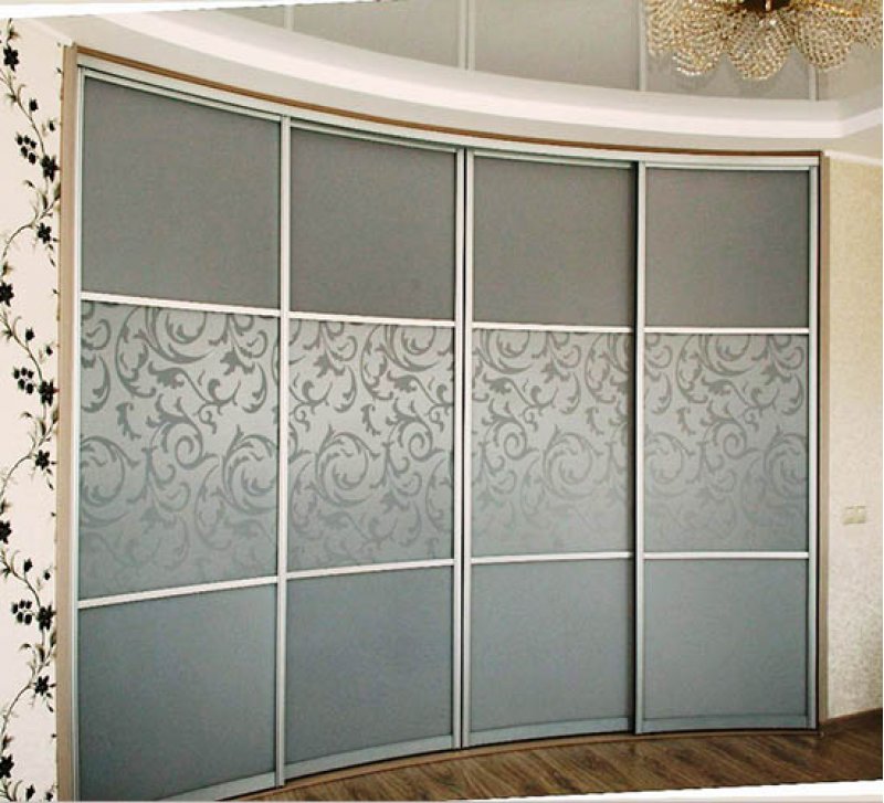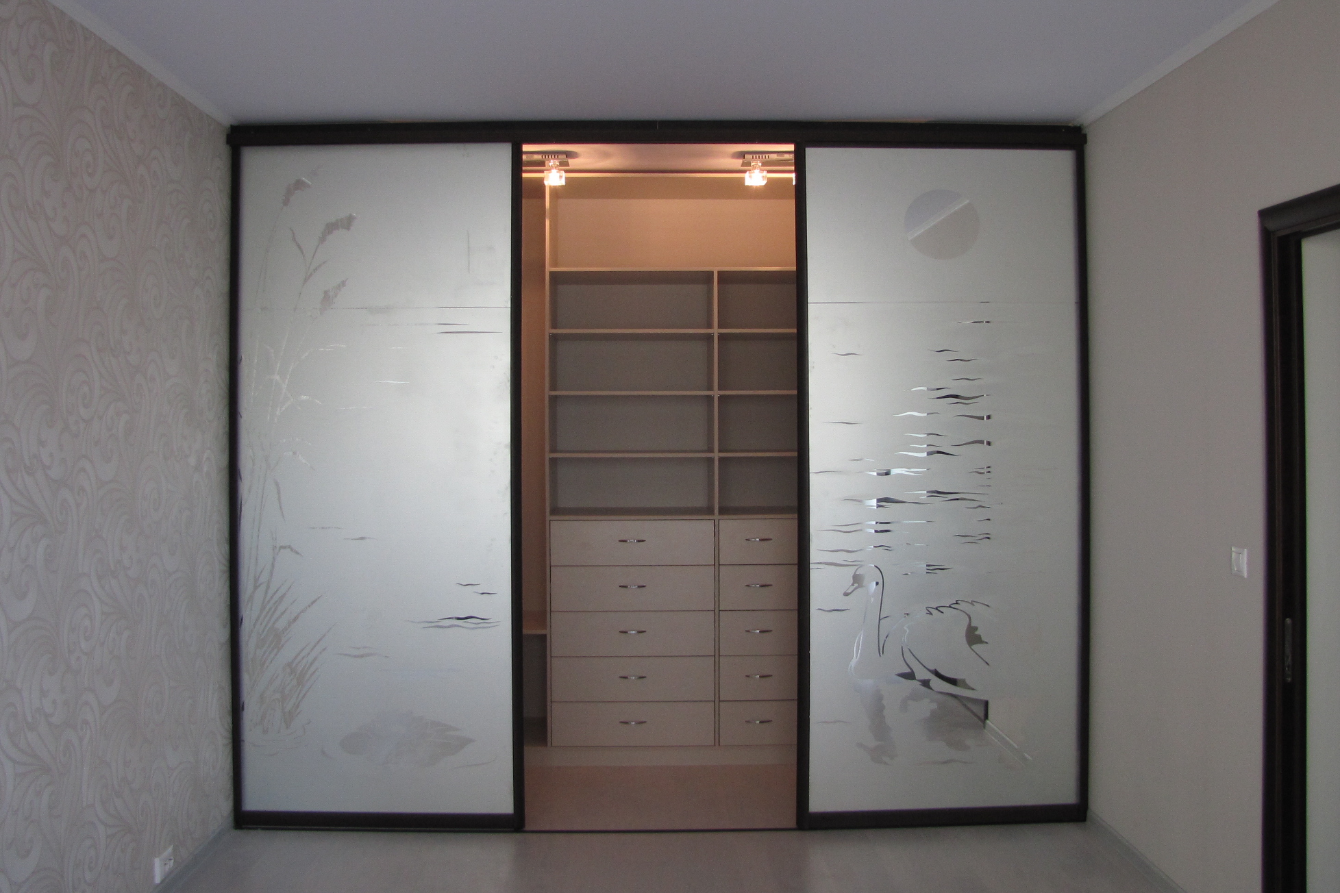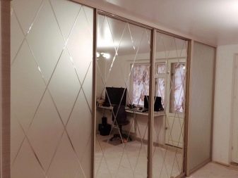 Les structures coulissantes en miroir et en verre sont souvent décorées de motifs et de dessins appliqués par sablage. En outre, la surface peut être rendue mate. Non moins populaires sont les pièces en verre à facettes, qui sont bien adaptées aux structures à compartiments. Les portes peuvent être recouvertes d'un film avec impression photo, ce qui vous permettra d'ajouter du piquant à l'intérieur.