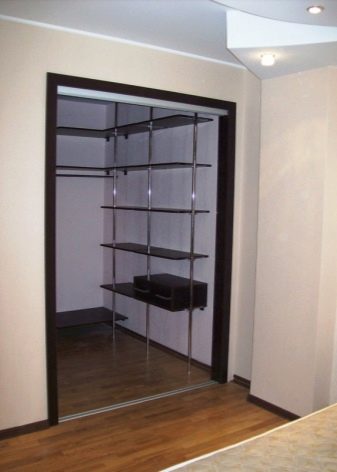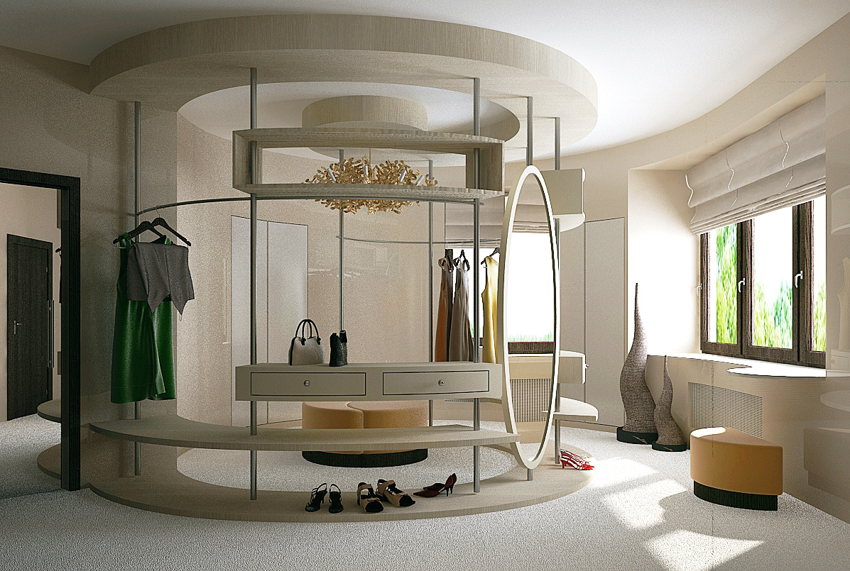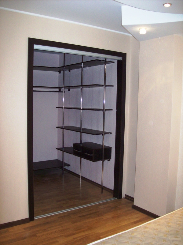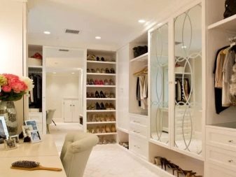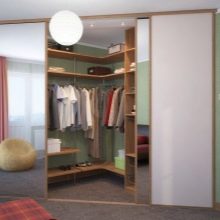 Il est impératif de s'équiper d'un dressing confortable. Il doit être organisé même s'il y a une mini-penderie dans la chambre. La zone indiquée peut être très petite. Il est recommandé d'y installer un miroir. Si cela n'est pas possible, il doit être fixé sur la porte. Pour économiser de l'espace inoccupé, il vaut la peine de fixer une barre en spirale dans le coin. Aussi, une bonne solution serait d'installer un élévateur à pantographe.