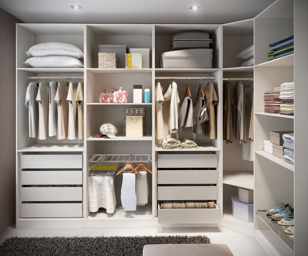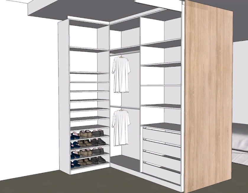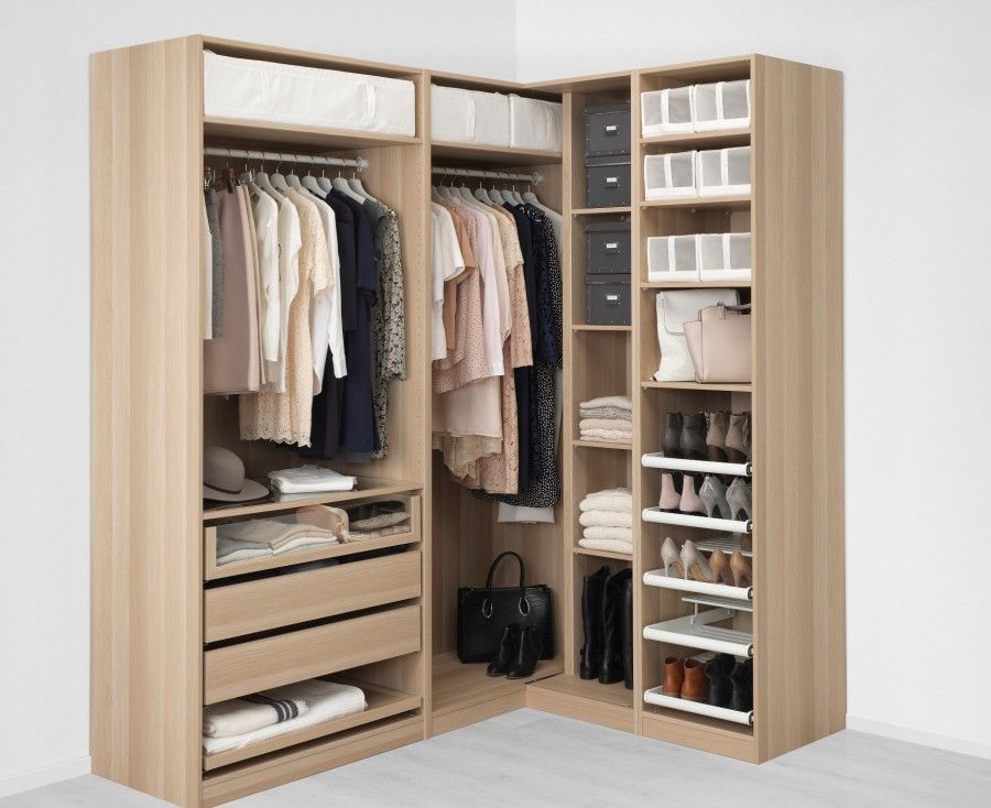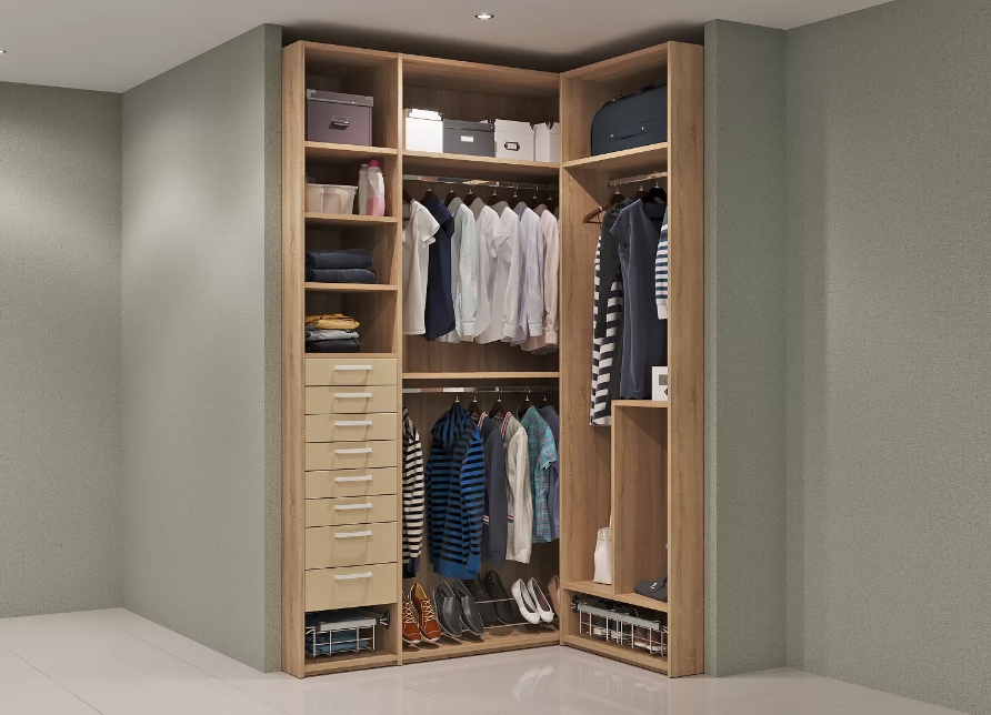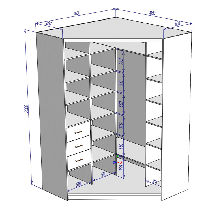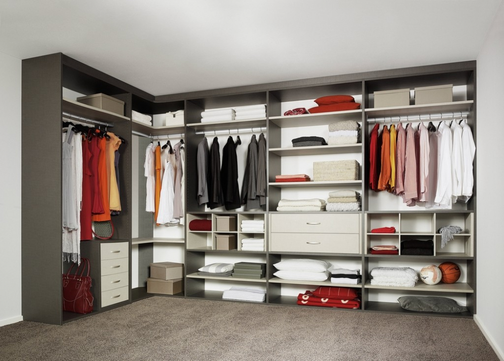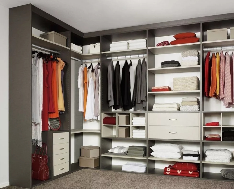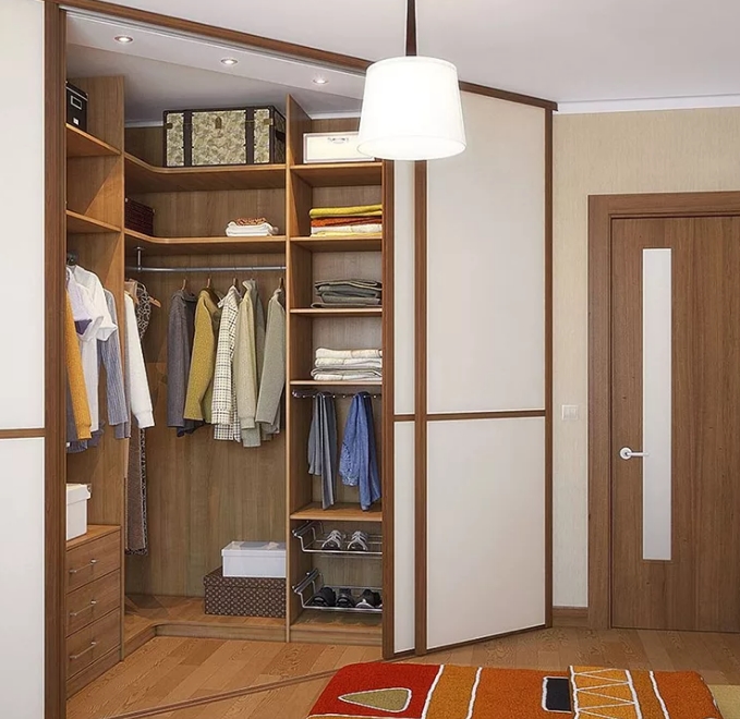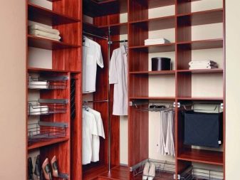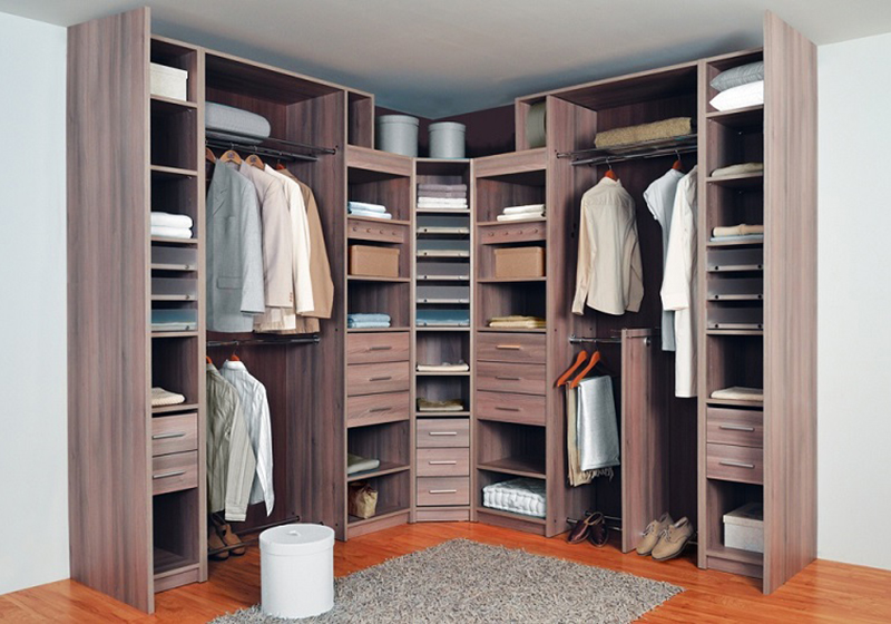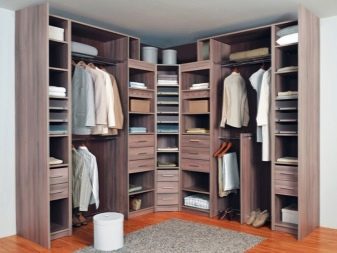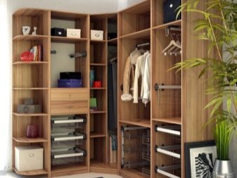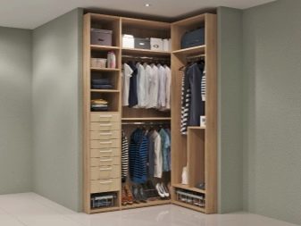 Le remplissage du dressing doit être pensé avec beaucoup de soin. Vous pouvez établir un dessin détaillé, qui indiquera tous les composants de la structure d'angle.