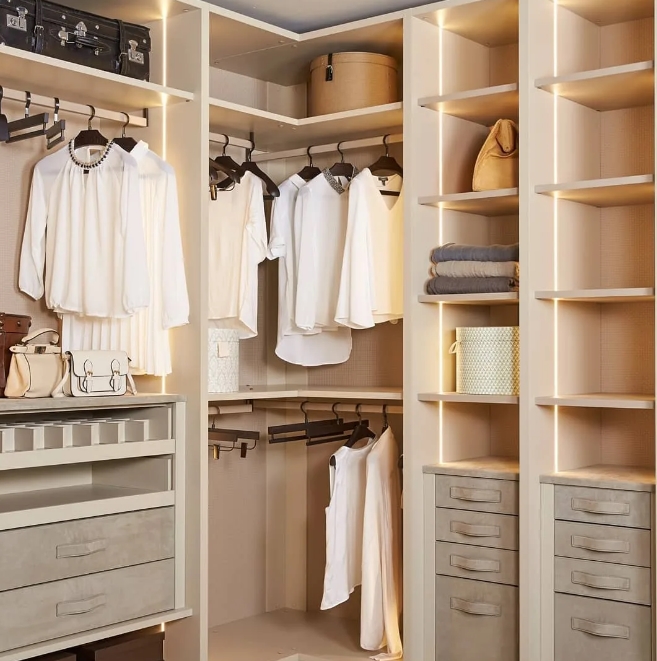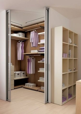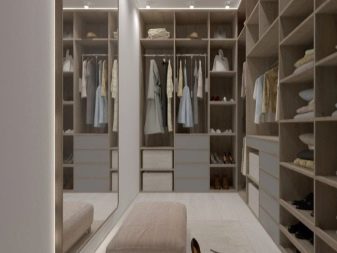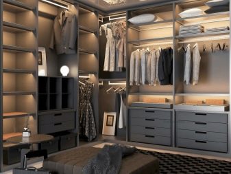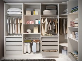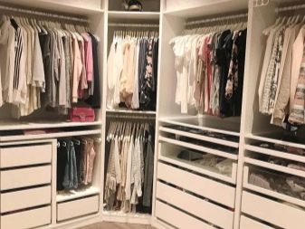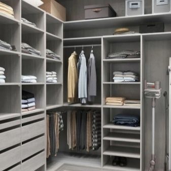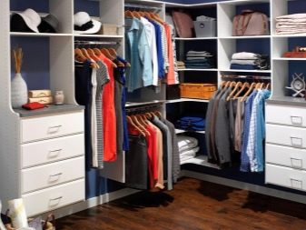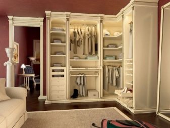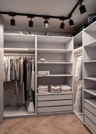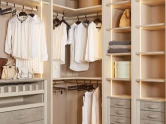 L'espace à l'intérieur du dressing en question doit être soigneusement pensé. Pour bien exploiter une place dans un coin, il faut bien installer des systèmes de stockage. De ce fait, il sera possible d'éviter le chaos dans la garde-robe, de rendre son fonctionnement aussi confortable que possible.
