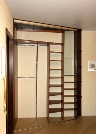 - Vous aurez également besoin d'étagères à chaussures. Habituellement, ils sont équipés au-dessus de la zone désignée pour placer les vêtements d'extérieur ici. Les paramètres optimaux pour la largeur de ce composant du dressing sont de 80 à 100 cm.