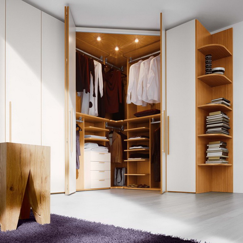 - Les armoires d'angle se caractérisent par une utilisation très confortable. Sous réserve d'une disposition bien pensée dans de telles structures, toutes les choses seront disposées à leur place, vous n'aurez donc pas à chercher longtemps la copie souhaitée.