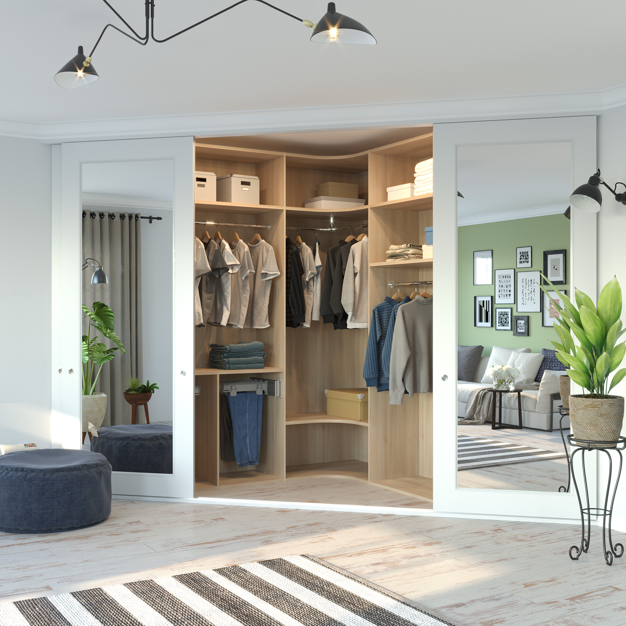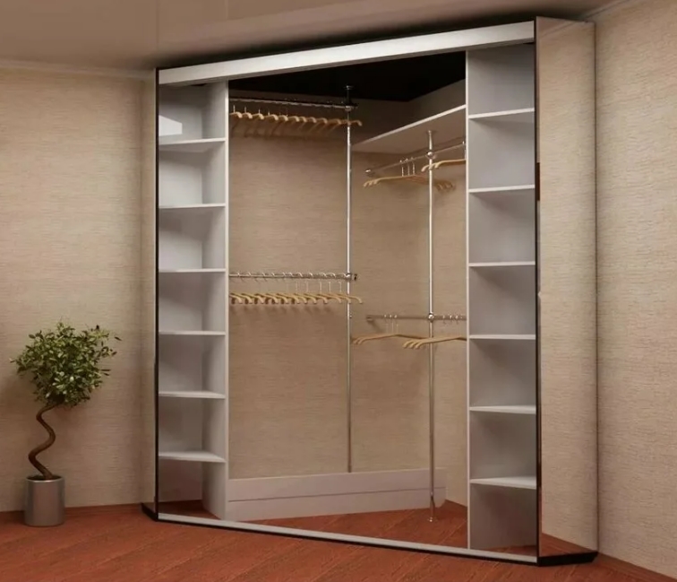 - Dans le contexte de l'espace d'angle, il est peu probable qu'il soit possible d'installer un grand miroir pleine longueur. Ce problème peut être résolu au moyen de portes en miroir.