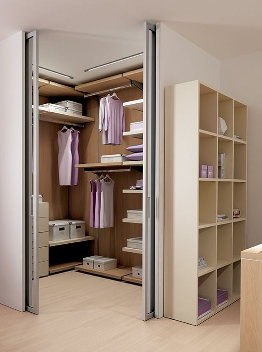 - Les conceptions considérées semblent compactes et soignées, mais cela n'affecte pas leur capacité et leur commodité. Les dressings d'angle n'ont l'air que petits, mais dans leur partie intérieure, les utilisateurs peuvent facilement placer un grand nombre de choses différentes. Cette qualité est particulièrement pertinente lorsqu'il s'agit d'aménager cette structure dans un petit logement.