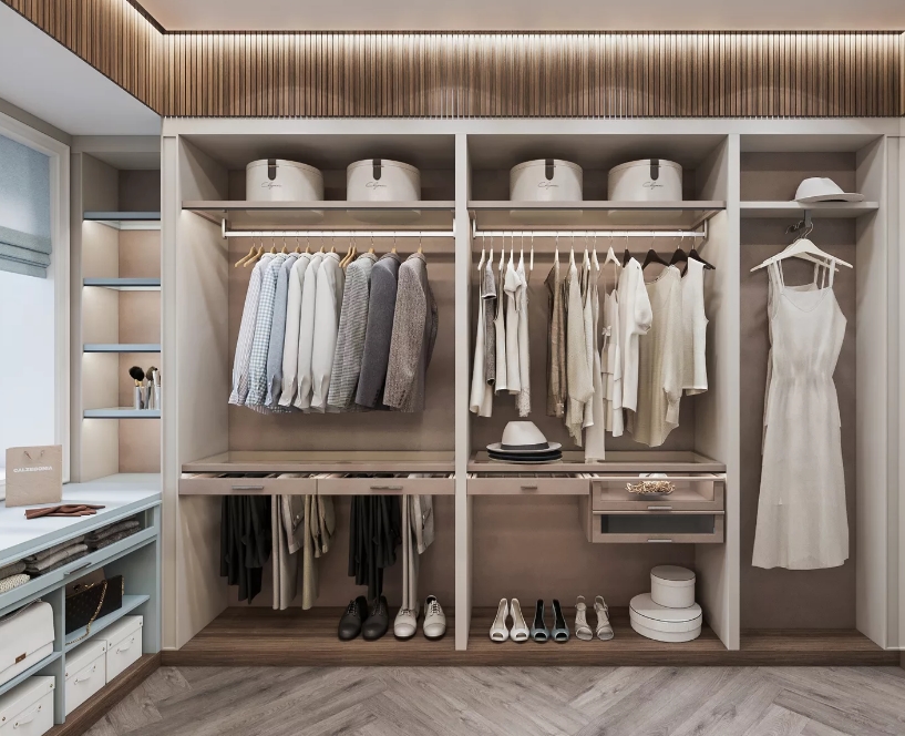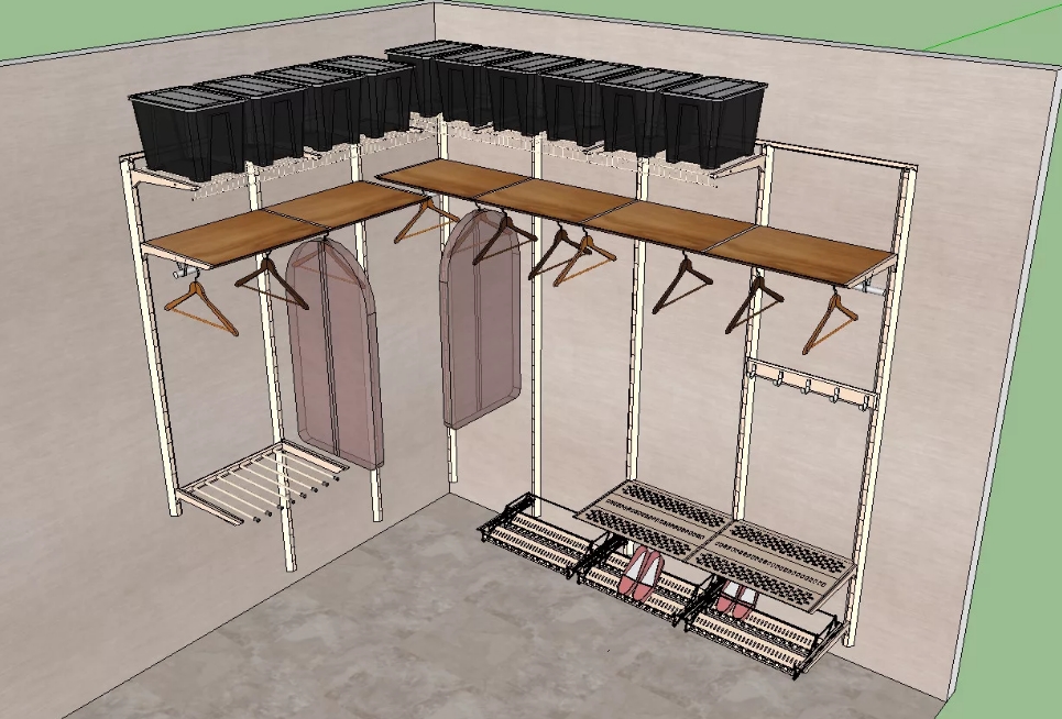 - Il est nécessaire d'organiser un espace dédié aux vêtements d'extérieur. Sa hauteur doit être d'au moins 150 cm.