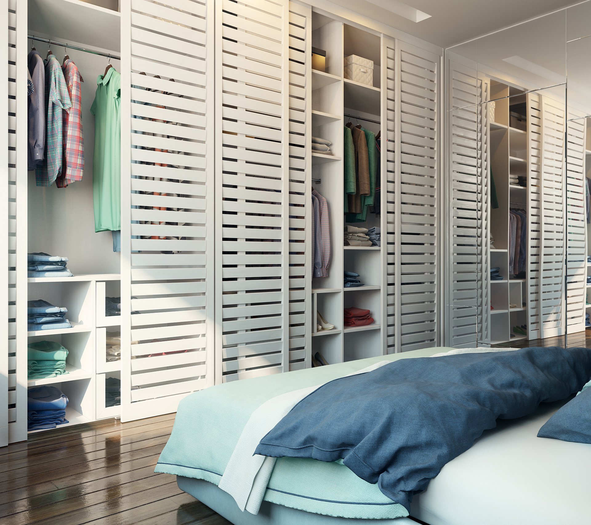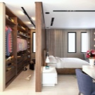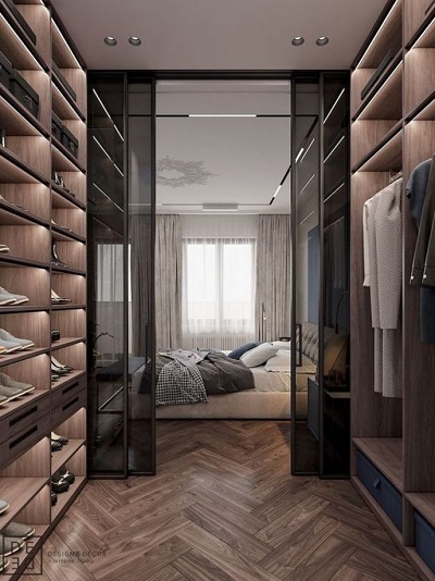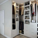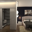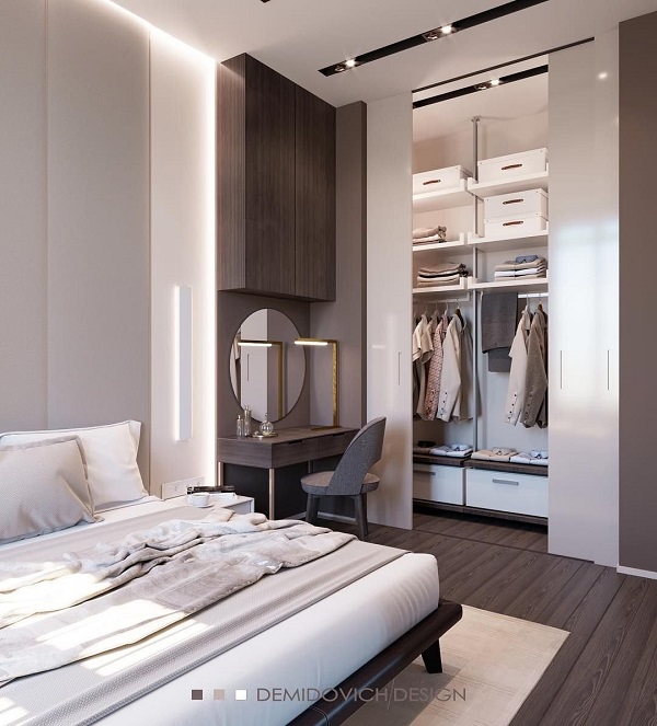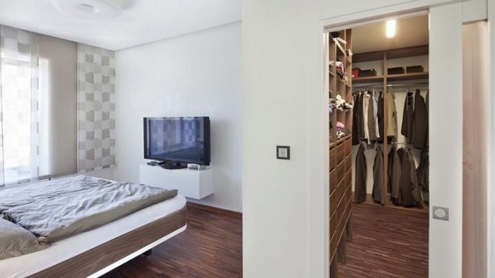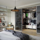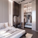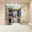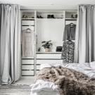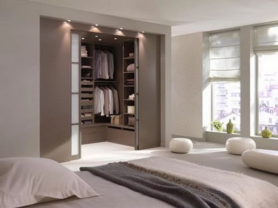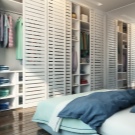 La volonté d'optimiser l'espace intérieur conduit à l'unification des espaces fonctionnels dans les maisons et les appartements. La combinaison d'un dressing et d'une chambre permet de résoudre le problème du rangement des vêtements et des chaussures, facilite la sélection des images avant de quitter la maison et réduit le temps des préparatifs matinaux pour le travail.