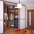 - Armoires. Ils peuvent être facilement installés dans une niche ou le long d'un mur avec un surplomb important. Avec la bonne approche, il sera possible de placer à l'intérieur non seulement des étagères et des rails, mais également une petite cabine d'essayage avec un miroir pleine longueur.Le remplissage de l'armoire est réglable individuellement ; vous pouvez y inclure divers paniers, étagères, modules, structures suspendues et roulantes. Cette option s'intègre bien dans la conception d'une pièce de passage ou d'une petite chambre.