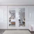 Il est d'usage d'installer une porte en bois massif si le dressing est aménagé dans une pièce séparée, un débarras attenant à la chambre. Les structures légères translucides avec inserts en verre conviennent aux petits dressings aux murs en plaques de plâtre. Avec un aménagement de type ouvert, vous pouvez même aménager l'entrée de l'armoire sous la forme d'une arche, d'une niche, si nécessaire, en la recouvrant d'un écran dans un style donné.