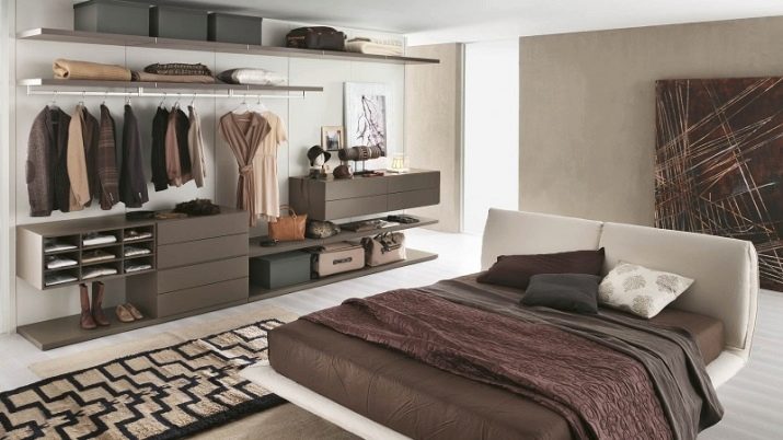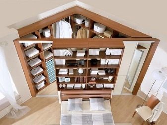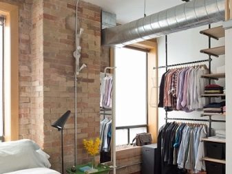 - Grenier. Ce dressing peut être équipé dans presque n'importe quelle partie de la chambre. Le rôle principal est joué par des supports métalliques sur roues qui peuvent être déplacés dans la pièce. Le niveau inférieur est le plus souvent représenté par des paniers en filet pour chaussures, le reste des vêtements en housses est suspendu à des rails.