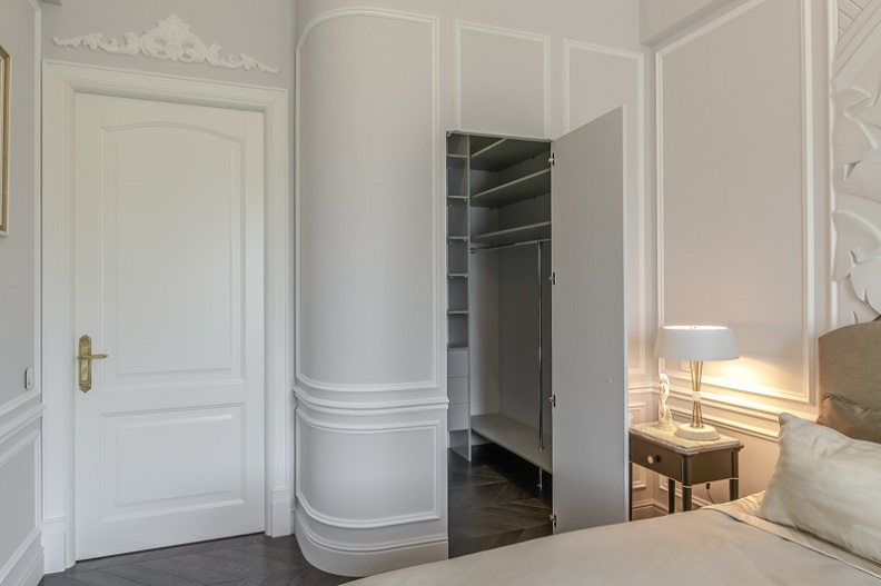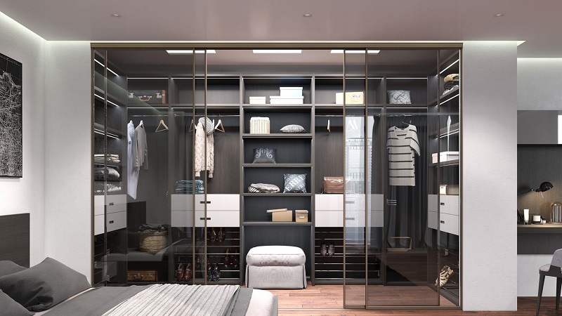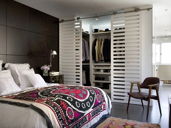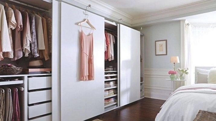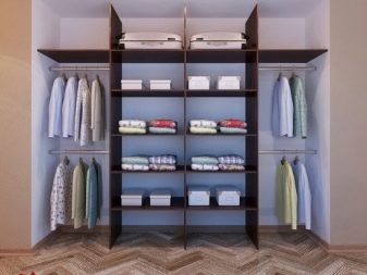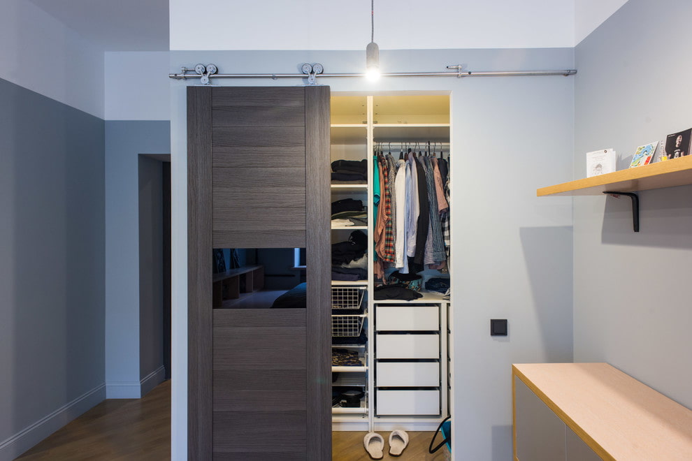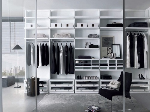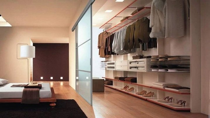 Lors de la disposition des cloisons, il est important de comprendre exactement quelle place occupera la garde-robe. Il peut s'agir d'une structure cachée derrière un paravent ou dans une niche, d'une pièce combinée à une salle de bain séparée, ou d'un système de rangement ouvert avec des portes vitrées.