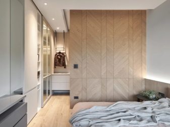 Il n'y a pas trop d'inconvénients à une telle solution de conception. Le principal est de réduire la surface de la chambre elle-même. En séparant une place pour un dressing, il faut sacrifier une partie de l'espace de vie.