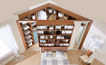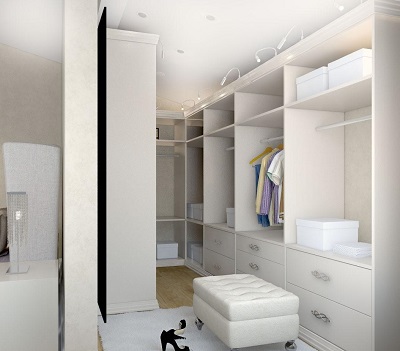 - Possibilité d'hébergement dans une zone limitée. Le dressing peut être aménagé dans une alcôve ou dans le coin de la chambre.