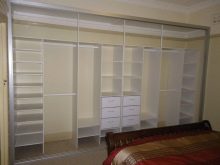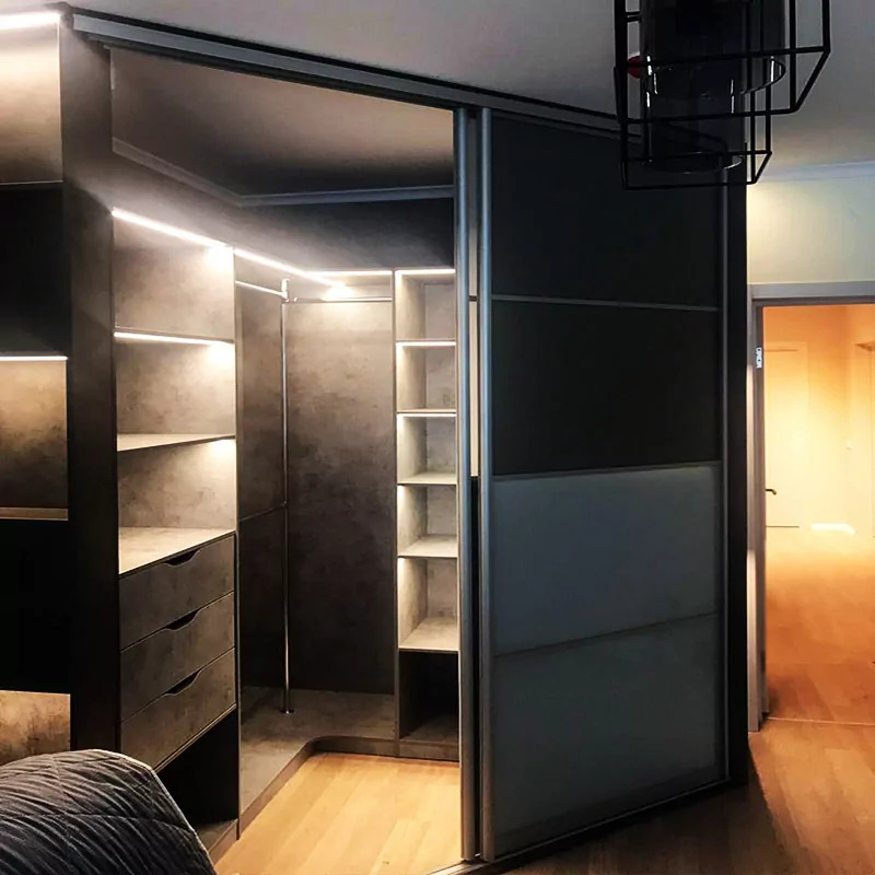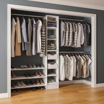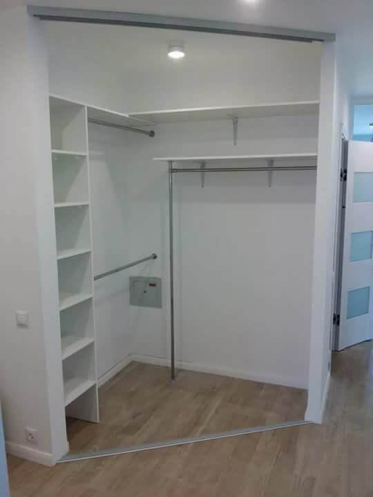 - Vous pouvez placer le dressing n'importe où. Même dans l'appartement le plus compact, il existe un coin pratique ou une niche de forme irrégulière.