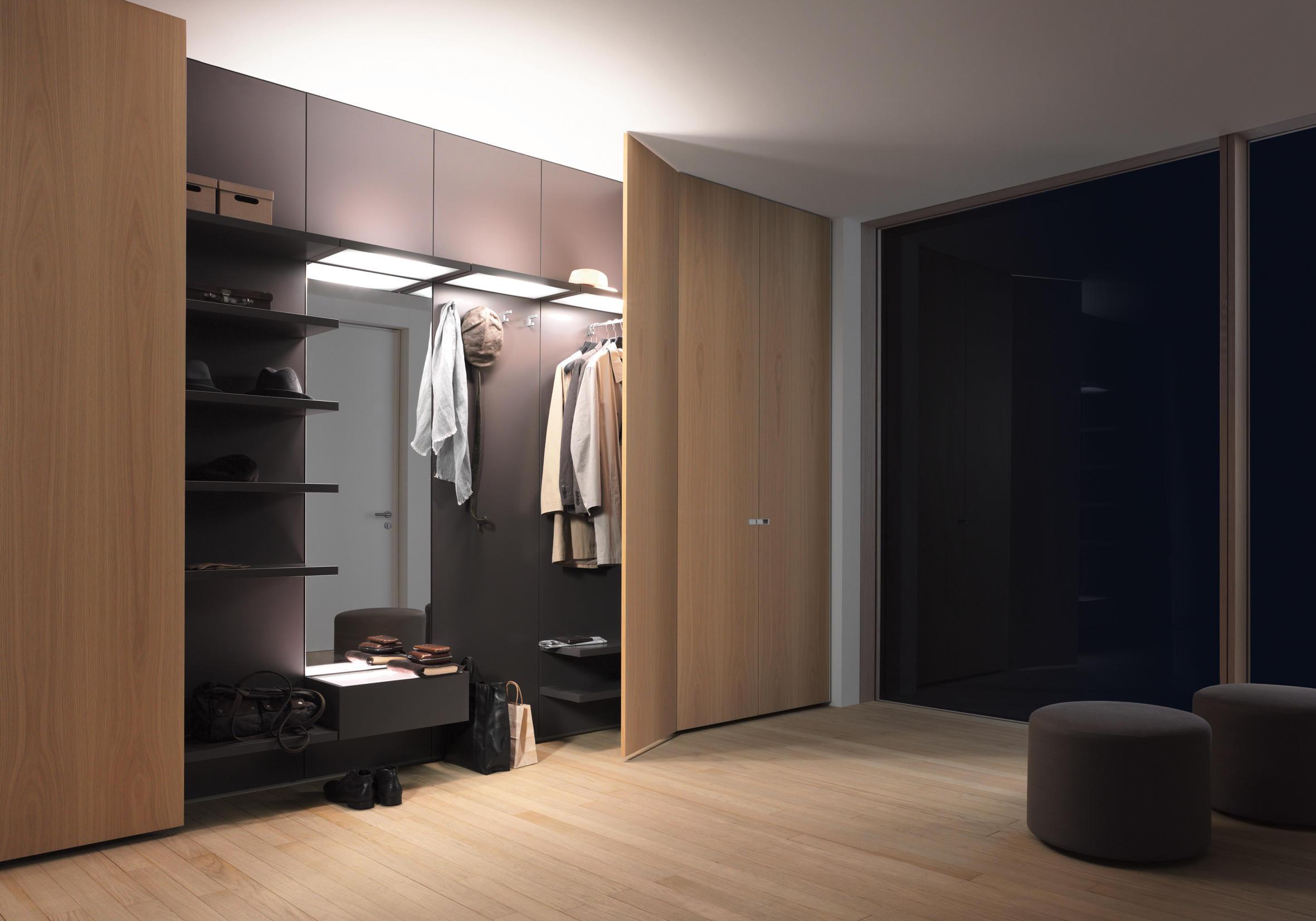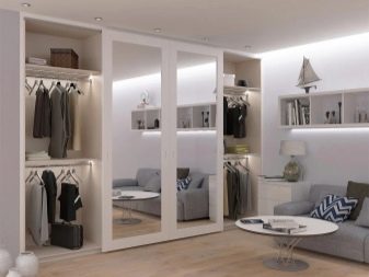 Une autre option pour placer un dressing est une cloison installée afin de diviser la zone en zones. Cela est particulièrement vrai pour les studios dans lesquels la cuisine et le salon sont combinés.