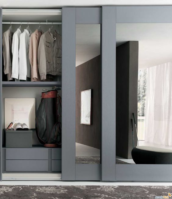 Outre, dans l'armoire intégrée, vous devriez trouver une place pour un grand miroir. De plus, c'est mieux si c'est en pleine longueur. Il peut également accueillir une planche à repasser, une échelle de chaise haute, un organisateur de choses, des dispositifs pour ranger facilement divers objets.