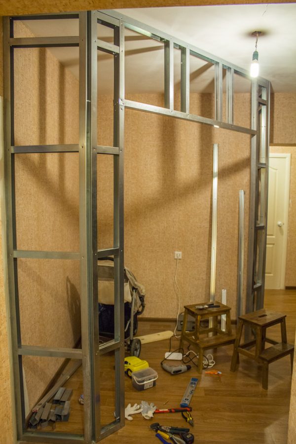 Après avoir choisi l'emplacement et les dimensions, vous devez procéder à l'installation. Le plus simple est l'option des cloisons sèches et du cadre galvanisé.