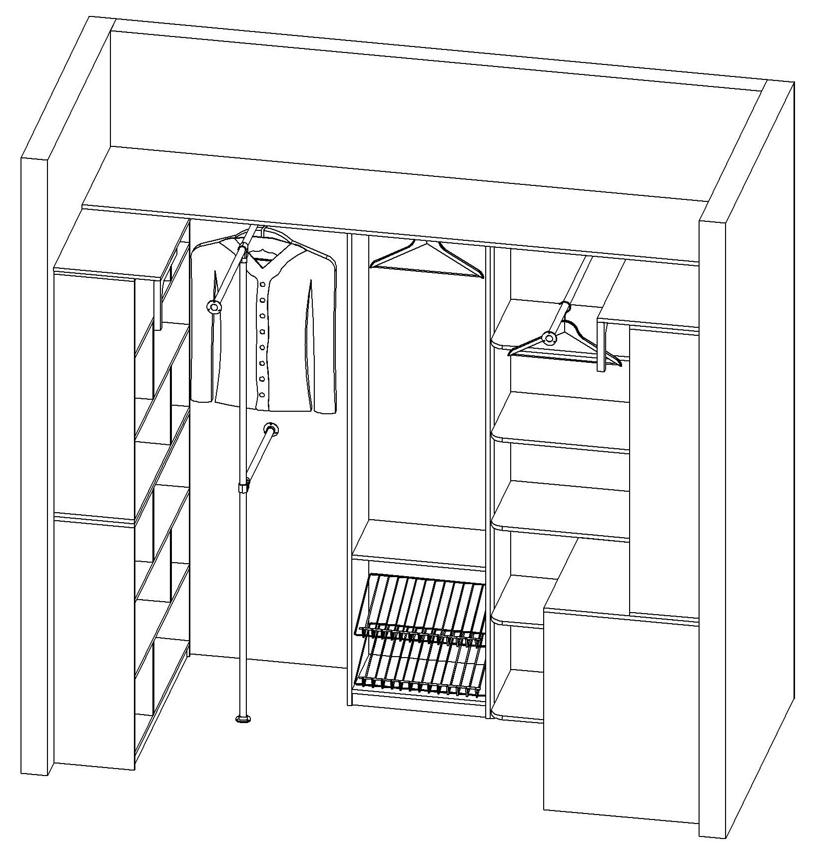 - Aux niveaux intermédiaire et principal, il est optimal de ranger les vêtements souvent utilisés. Un compartiment haut (à partir de 170 cm) avec une barre est équipé pour les vêtements d'extérieur. La section du milieu doit être aussi ouverte que possible avec de nombreuses étagères et tiroirs. Pour gagner du temps lors du choix des choses, vous pouvez utiliser des compartiments dotés d'un panneau avant transparent.