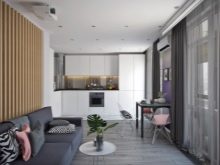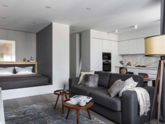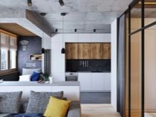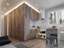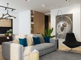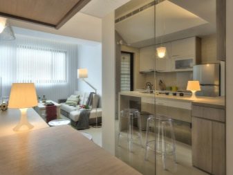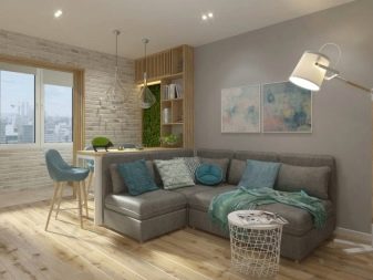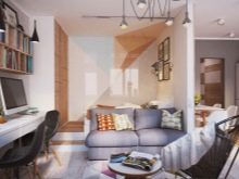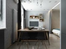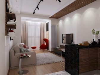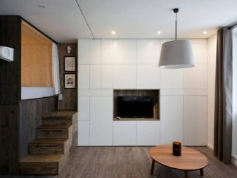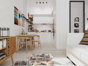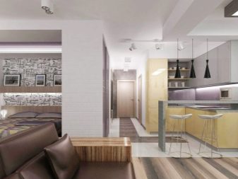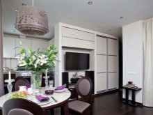 - Dans un studio de petites dimensions, il est possible de déplacer la cuisine, de combiner le hall avec le couloir ou avec le couloir... De telles solutions sont le plus souvent abordées. Dans le salon, lors du choix d'un aménagement similaire, vous pouvez disposer des meubles fonctionnels transformables.