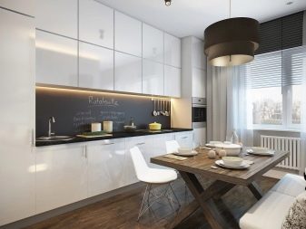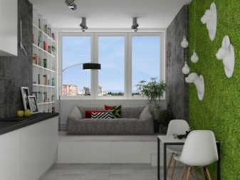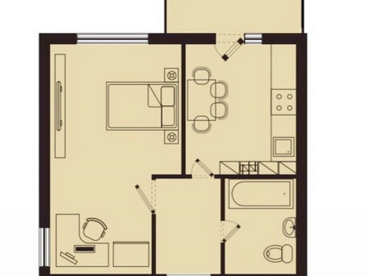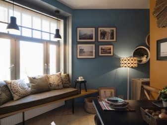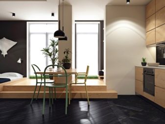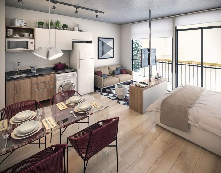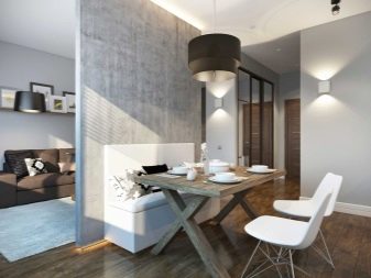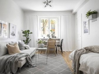 Une table à manger avec des chaises est le plus souvent placée à proximité immédiate d'une fenêtre ou d'un balcon. Il est conseillé de choisir un canapé-lit. Un lit transformable sera également une bonne solution. Cela permettra d'économiser de l'espace.
