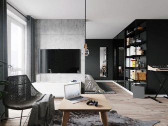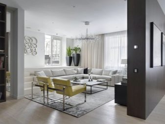 - Lors de la planification d'un plan classique dans le salon principal, ils équipent le plus souvent un espace invités, une chambre et également un espace de travail.... Si nous parlons d'un studio, alors ici, vous pouvez prendre un endroit pour manger.