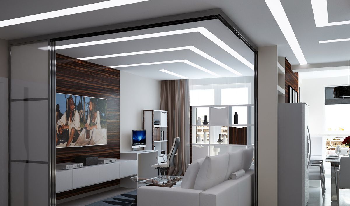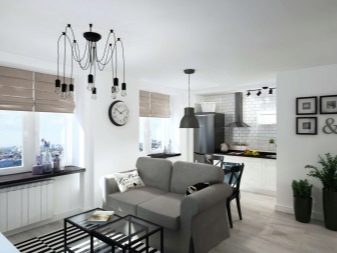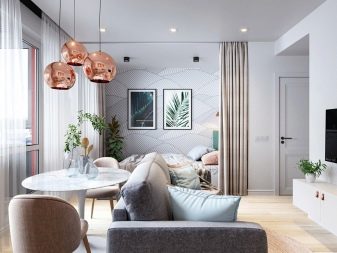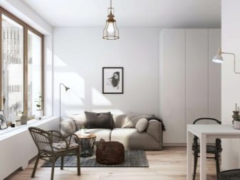Lors de l'aménagement de 32 mètres carrés, l'éclairage joue un rôle important. Le plus léger devrait être le salon et la salle à manger.
