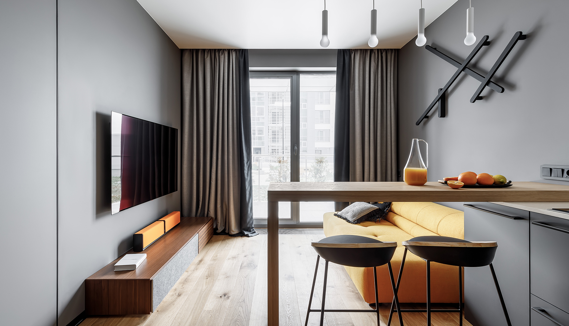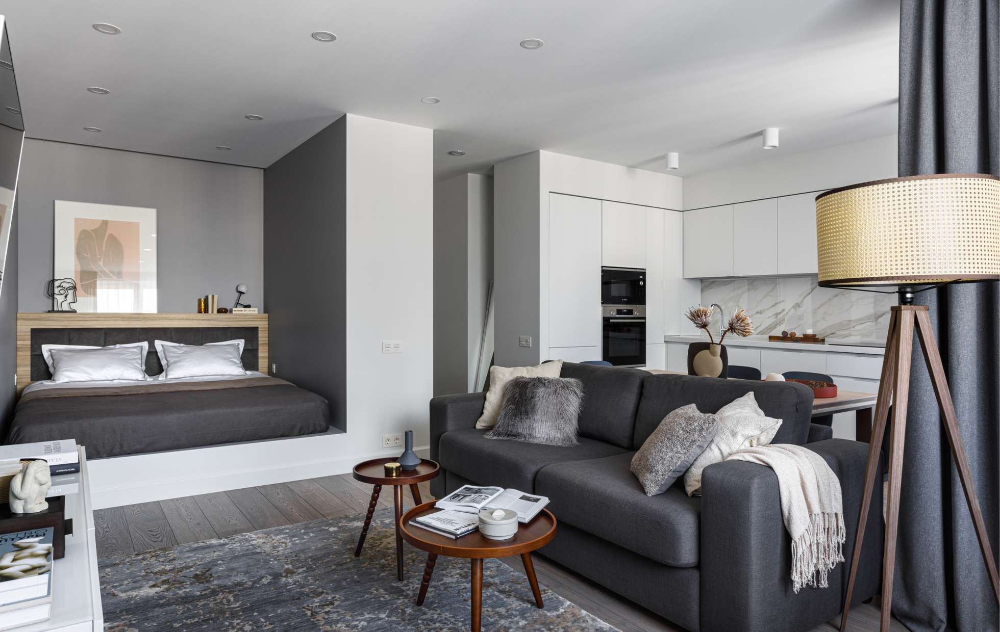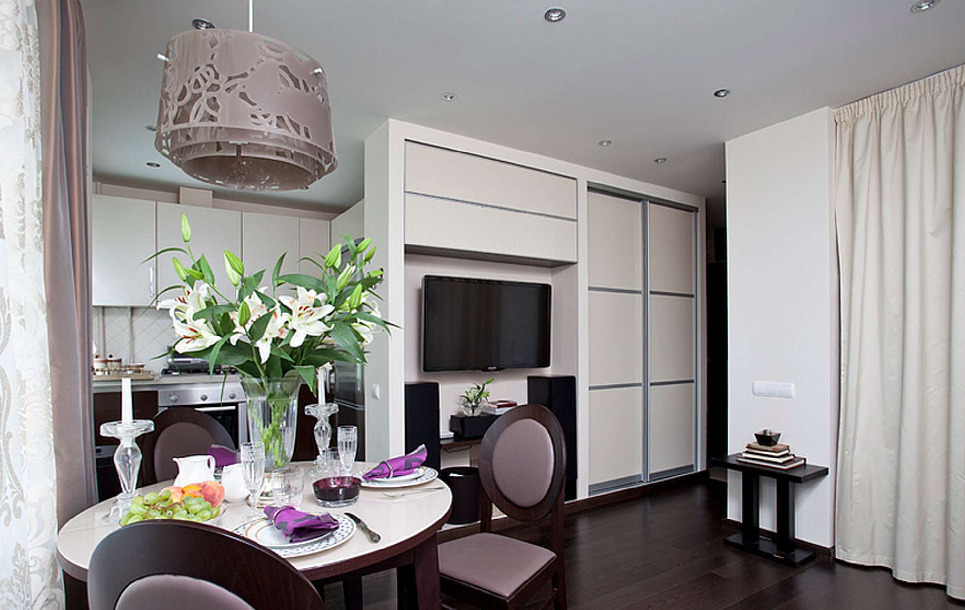 Il est possible d'agrandir visuellement l'espace disponible d'un appartement d'une pièce en se référant à certains matériaux de finition.