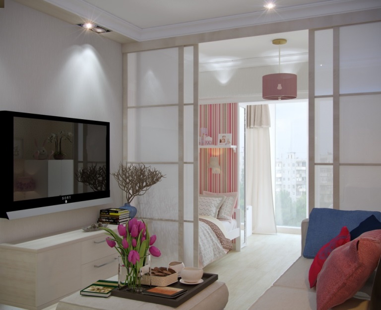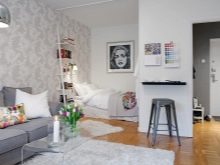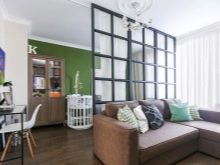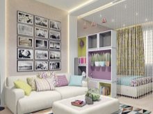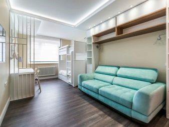 Dans les maisons construites pendant l'Union soviétique et pendant la période de la perestroïka, la superficie totale des appartements d'une pièce ne dépassait pas 30 mètres carrés. m. Avec cette taille, le zonage de l'espace de vie n'est pas si facile. Et dans les nouveaux bâtiments modernes, la superficie des studios 1 pièce est d'environ 60 m². m Ces appartements peuvent être divisés en deux parties, à savoir pour clôturer la chambre des enfants et la zone de loisirs pour adultes, qui joueront le rôle de salon le jour et de chambres la nuit.