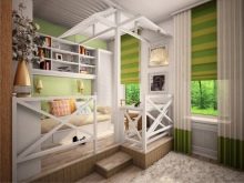 Lors de l'organisation d'un espace pour enfants, une attention particulière doit être accordée au mobilier. Chaque détail de l'intérieur doit être multifonctionnel. Le lit devrait être des transformateurs. Ce serait bien si la table de chevet pouvait devenir l'état de la table.