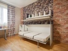 La solution idéale pour l'aménagement d'appartements d'une pièce est le mobilier transformateur. En tant que lit pour adultes, vous pouvez utiliser des canapés pliants ou un lit élévateur, qui se déguise dans le placard. Avec de telles conceptions de meubles, il sera possible d'économiser de l'espace libre dans la pièce. L'espace enfants est aménagé de la même manière.