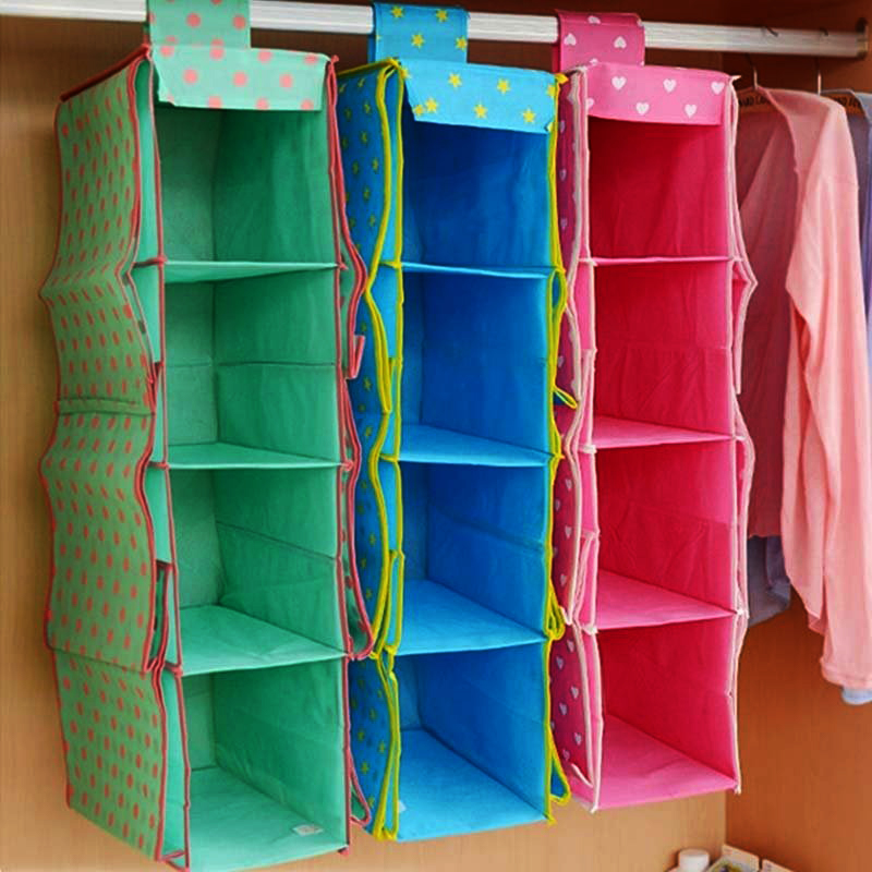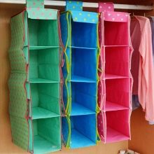 Eh bien, si l'espace pour enfants ne permet pas de placer d'autres meubles en soi, il suffit d'acheter des étagères suspendues en tissu et de les placer dans un placard pour adultes.