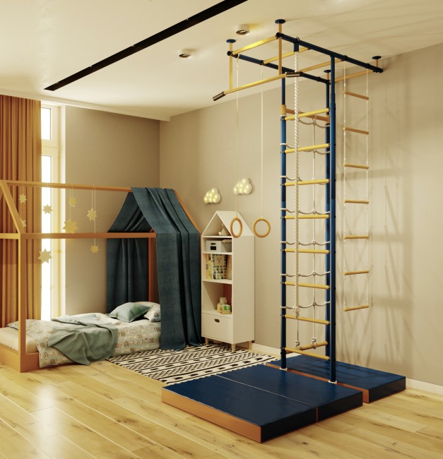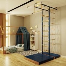 De nombreux parents essaient de respecter les normes classiques et achètent séparément un bureau, un ordinateur, un lit de couchage et, bien sûr, une armoire. Mais n'oubliez pas qu'un enfant d'âge scolaire a beaucoup d'autres intérêts. Par exemple, si un enfant fait du sport, il doit disposer d'un coin sport où il peut s'entraîner, ainsi que ranger les coupes et les prix reçus pour ses victoires.