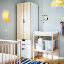 N'oubliez pas que chaque petit enfant a beaucoup plus de vêtements qu'un adulte. En conséquence, une armoire pour bébé doit être placée non seulement dans plusieurs tiroirs, mais également dans un placard. Si la zone de \u200b\u200bl'espace enfants le permet, vous pouvez installer une commode avec tiroirs.
