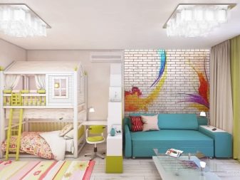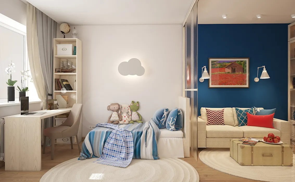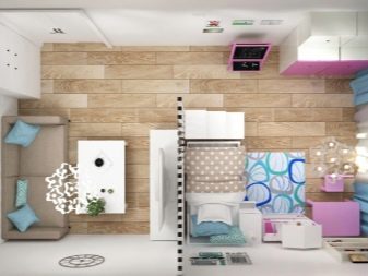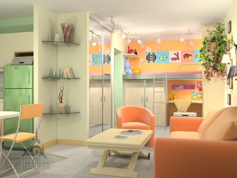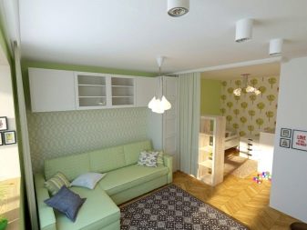 Si la famille a un petit enfant, les parents doivent lui créer un espace de vie individuel, où le bébé peut jouer, donner des cours, vaquer à ses occupations et, bien sûr, se détendre. Il n'est pas si difficile pour un enfant de préparer un appartement personnel dans des appartements à plusieurs pièces. Mais les propriétaires de studios d'une pièce ont une période beaucoup plus difficile. Il semble à beaucoup que dans de telles conditions, les adultes et les enfants ne peuvent pas avoir d'espace personnel dans la même pièce, mais ce jugement est incorrect.... Si vous réfléchissez correctement à la conception d'un studio, il sera possible de créer plus de 2 zones distinctes dans une pièce.