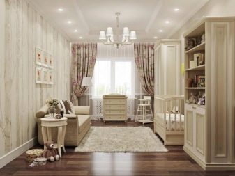 Les appartements d'une pièce, divisés en un espace adulte et un espace enfants, ont une disposition un peu particulière, puisque la partie parent joue le rôle de salon le jour et ne devient chambre que la nuit. C'est pourquoi, lors de la création d'un projet, il est extrêmement important de réfléchir au style à utiliser lors de la rénovation et de l'aménagement de l'intérieur. Par exemple, un classique.Ce style est traditionnel pour les salons et les chambres. mais ce sera inapproprié pour la crèche, car l'enfant ne pourra pas apprécier toutes les subtilités et la grâce de cette direction du design.