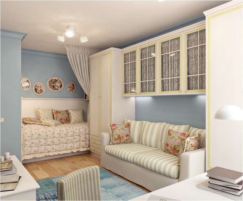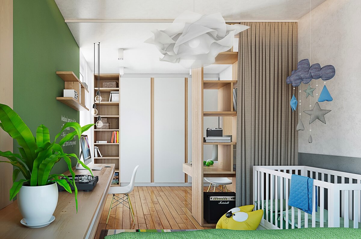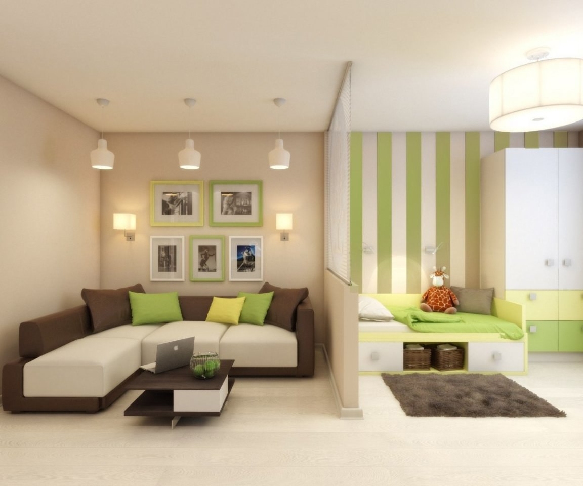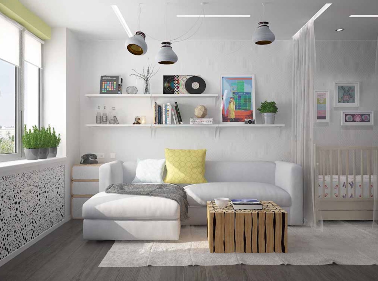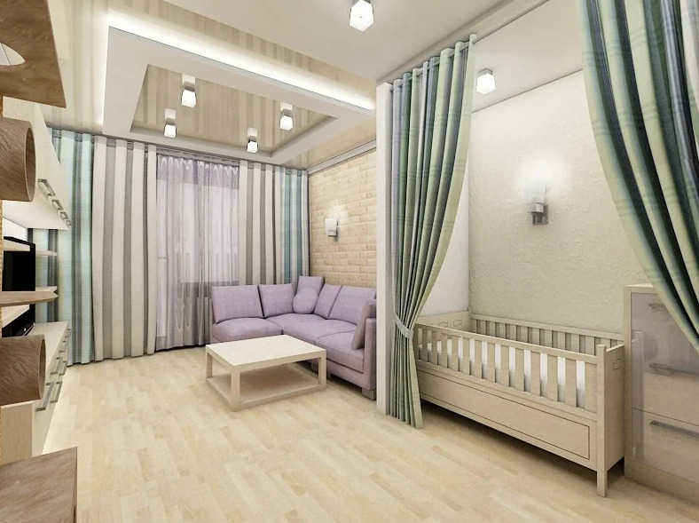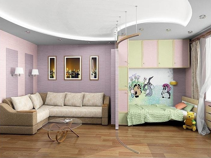 Plus récemment, les appartements d'une pièce sont devenus des studios. Tels que conçus par les architectes, ces appartements étaient destinés à 1 personne. Le propriétaire d'un espace de vie 1 pièce pourra, à sa demande, aménager l'espace selon son style préféré. Aujourd'hui, les jeunes familles vivent dans des studios d'une pièce et, après un certain temps, elles auront sûrement un enfant. Les futurs parents, n'ayant appris que le réapprovisionnement à venir, devraient penser à diviser la pièce en plusieurs zones. De plus, après la séparation, chaque zone séparée doit offrir à ses habitants un maximum de commodité et de confort.
