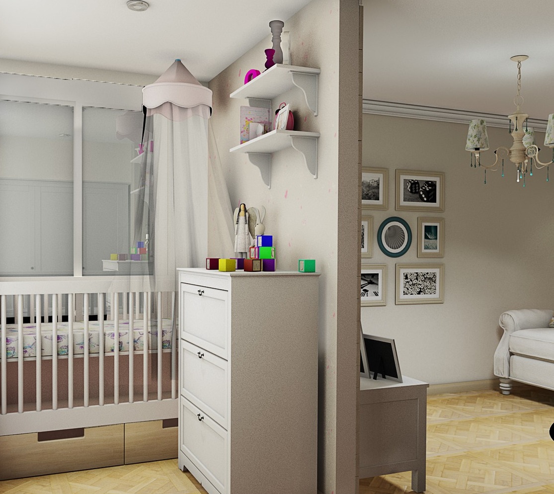 Lors de la division d'un appartement d'une pièce, les parents doivent comprendre que même si un petit enfant a son propre espace séparé, il ne sera en aucun cas constamment isolé. L'enfant viendra chez ses parents et apportera différents jouets avec lui pour passer du temps libre avec sa maman et son papa bien-aimés. Les parents doivent être préparés à ce fait. Bien sûr, n'oubliez pas que parfois les jeunes enfants viennent dormir avec leurs parents. C'est pourquoi l'enfant doit avoir un accès facile au lit de maman et papa afin qu'il ne trébuche pas ou ne tombe pas en chemin.