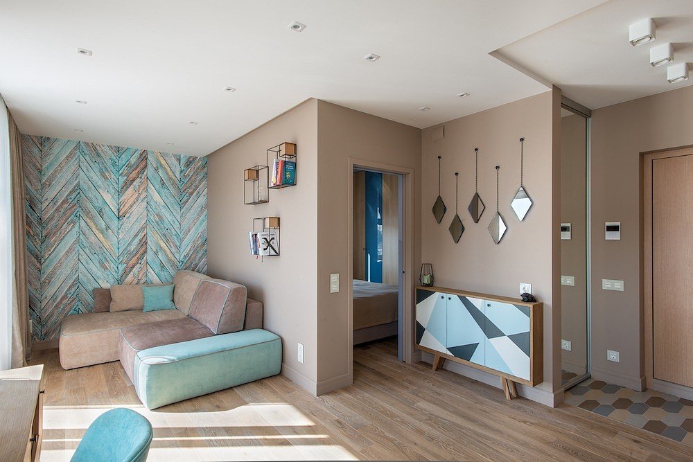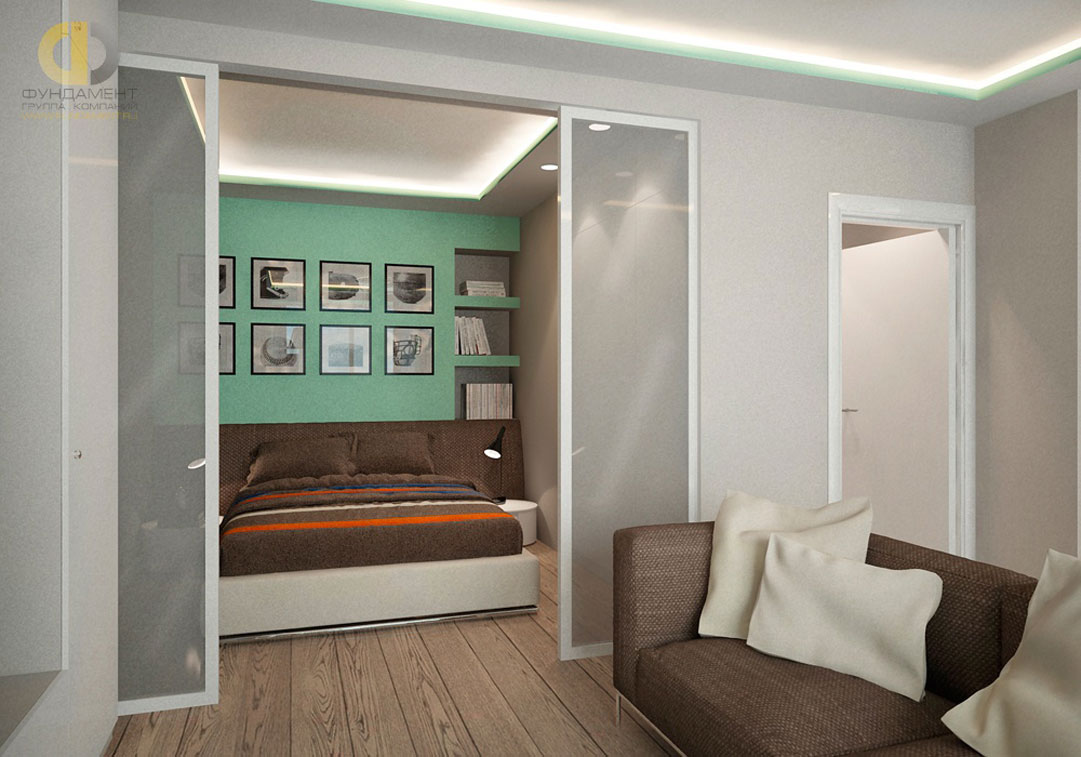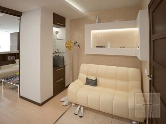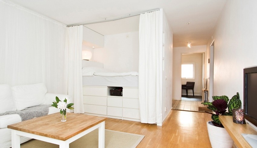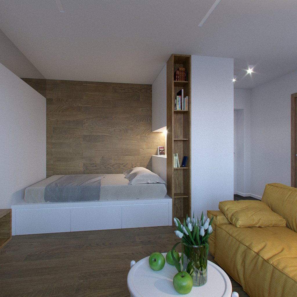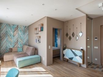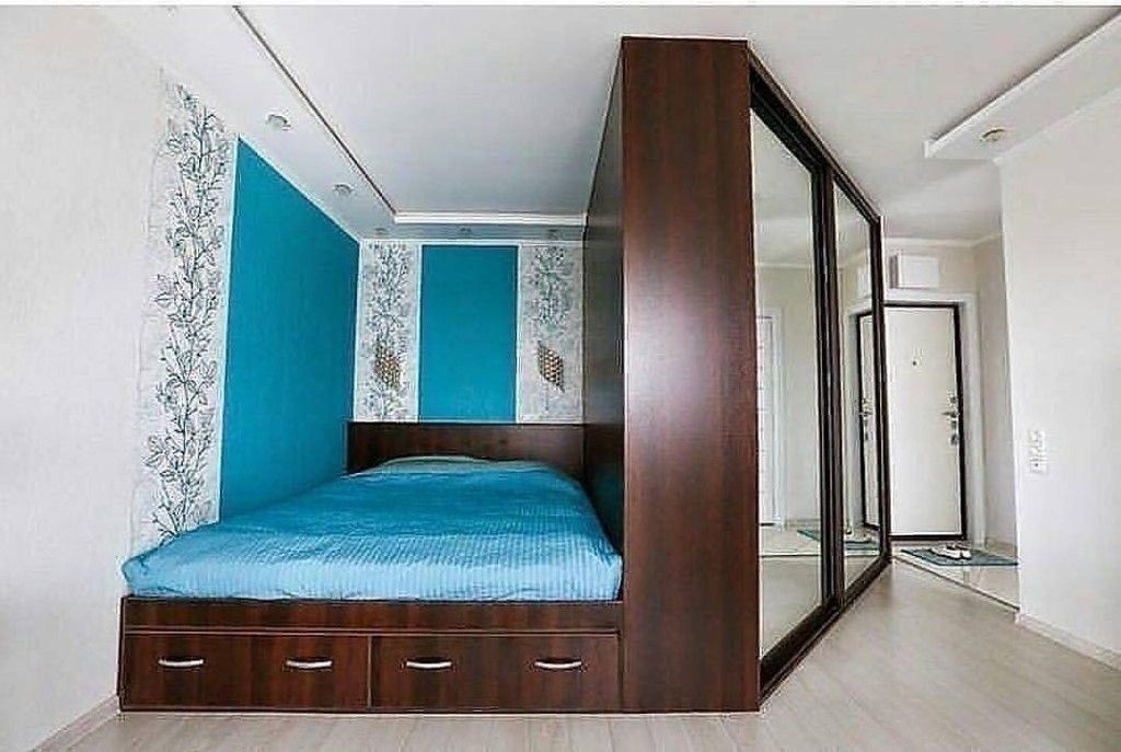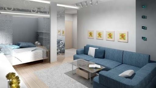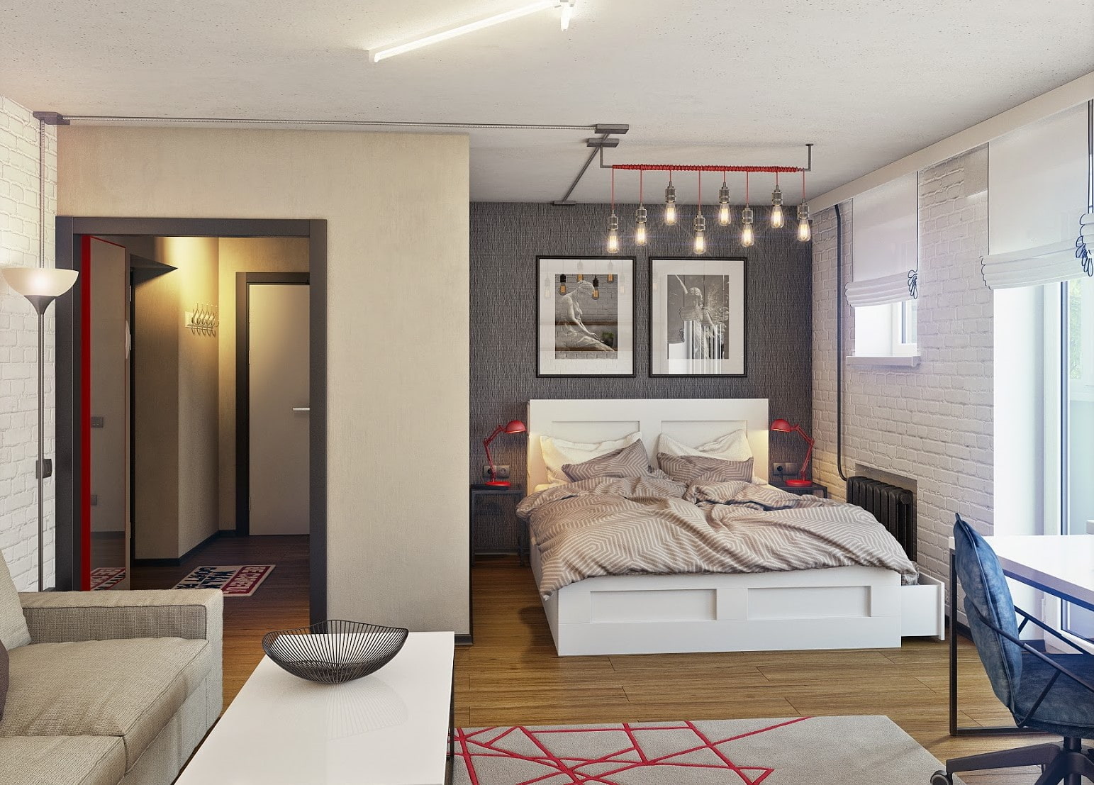 Lors de la création d'un intérieur dans un appartement d'une pièce avec un espace pour les meubles ou autres objets, les options de transformations possibles sont également prises en compte. Dans le cas où le renfoncement était auparavant utilisé comme chambre, il peut ensuite être transformé en bureau ou en aire de jeux pour enfants.