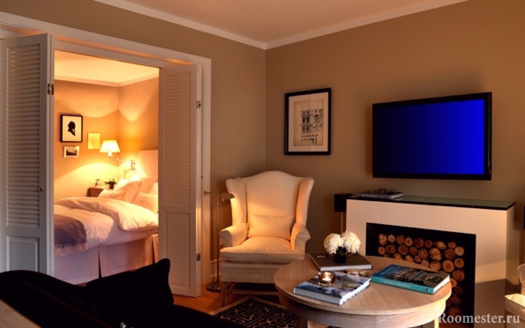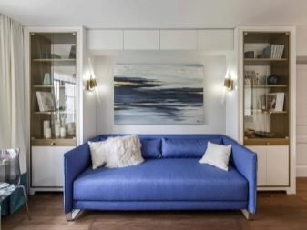 La niche du salon sera agrémentée d'étagères ou d'une commode. Lorsqu'on y place un lit, il vaut mieux le compléter par un éclairage doux au fond de l'alcôve elle-même. Un coin avec des sièges moelleux sera une option idéale pour la détente et un lieu pour les réunions en soirée avec un thé.