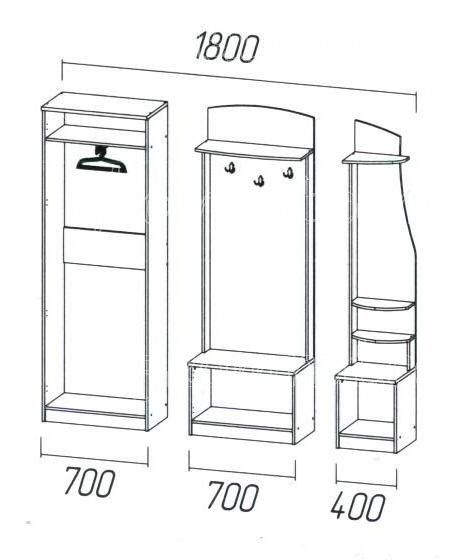 Avant de dessiner un cintre, vous devez décider de sa forme et évaluer la taille du couloir ou du couloir. Par exemple, dans une pièce oblongue, il est préférable de placer une longue structure avec des étagères. Dans les petites pièces, les modèles compacts sont optimaux.