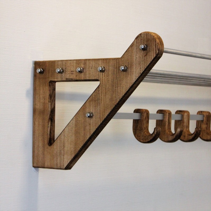 Il convient de souligner que le bois est un matériau de haute qualité et durable qui est largement utilisé dans la vie quotidienne. Un ajout intéressant à un tel cintre sera des éléments en cuivre ou en miroir.