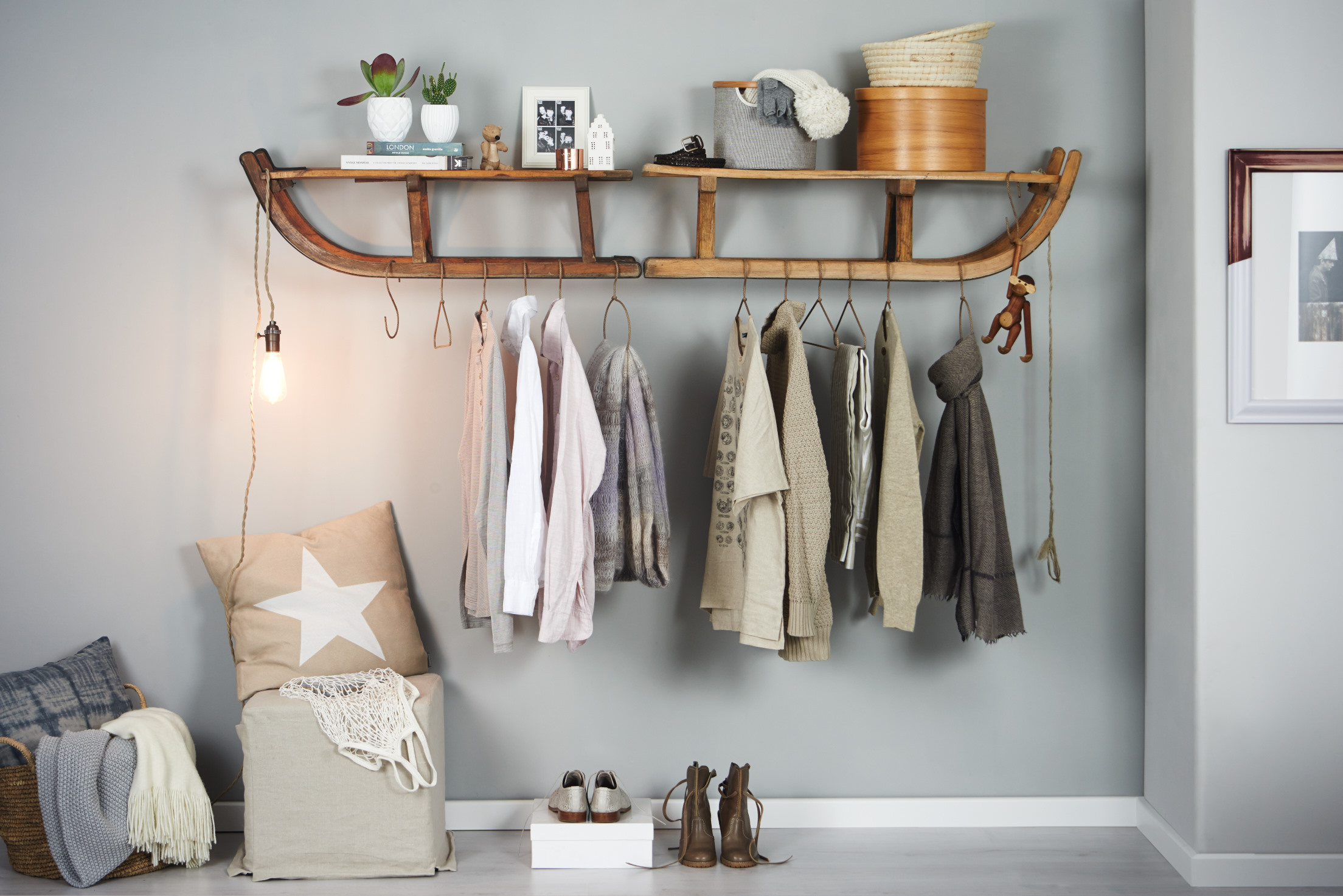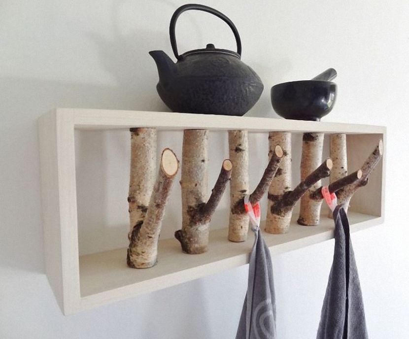 Les branches et les planches peuvent également être utilisées pour créer un modèle intéressant pour le stockage d'articles suspendus. Ces matériaux sont peu coûteux et font partie de nombreux intérieurs populaires.