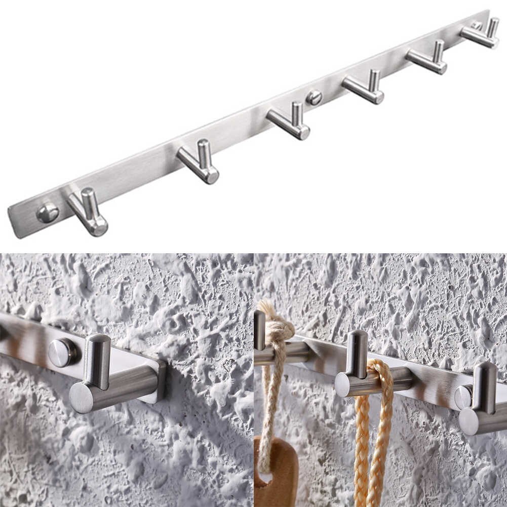 - À l'aide d'anneaux, 5 crochets sont suspendus à un tube de mètre et un té est collé aux extrémités.