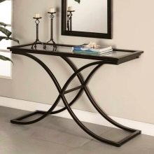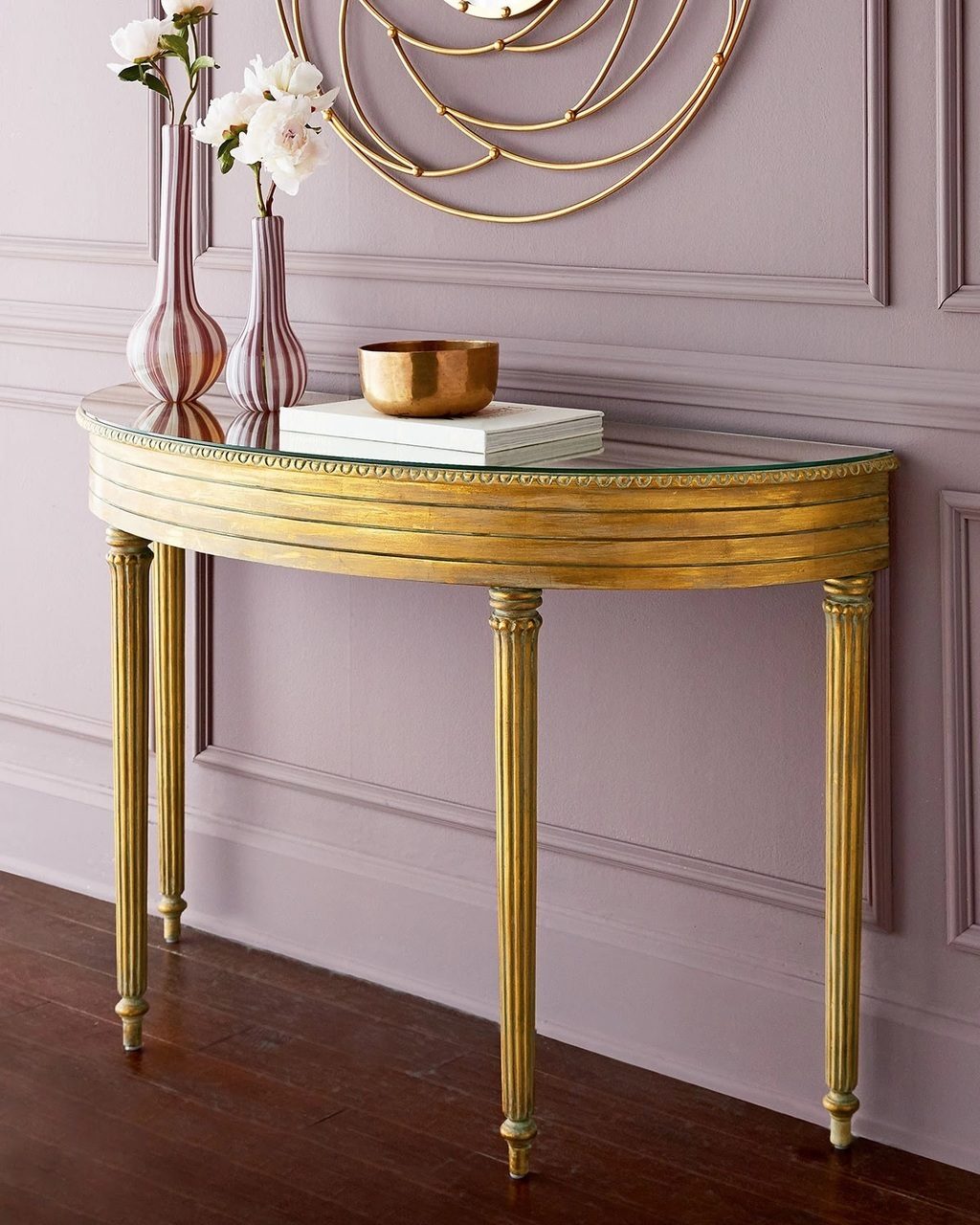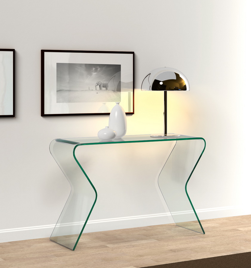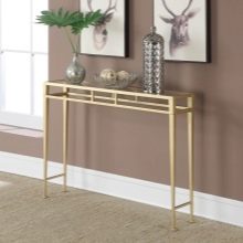 Les modèles de consoles en verre trempé semblent presque légers. Ils sont particulièrement beaux dans les pièces compactes, où l'accent doit être mis sur l'éclairage et l'espace. Malgré leur fragilité, les tables sont très durables et peuvent facilement résister aux contraintes mécaniques. Les verres peuvent être choisis lisses, texturés, complètement transparents ou teintés. Les inconvénients des consoles faites d'un tel matériau incluent le coût élevé.