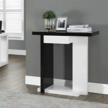 Les tendances du design moderne du minimalisme et de la haute technologie sont bien complétées par des consoles aux formes strictes et sans détails inutiles. C'est bien si les modèles sont équipés de compartiments de rangement. Quant aux nuances, il vaut mieux privilégier le calme et la monotonie. En termes de matériaux, la console peut être n'importe quoi : métal, verre, bois ou plastique.