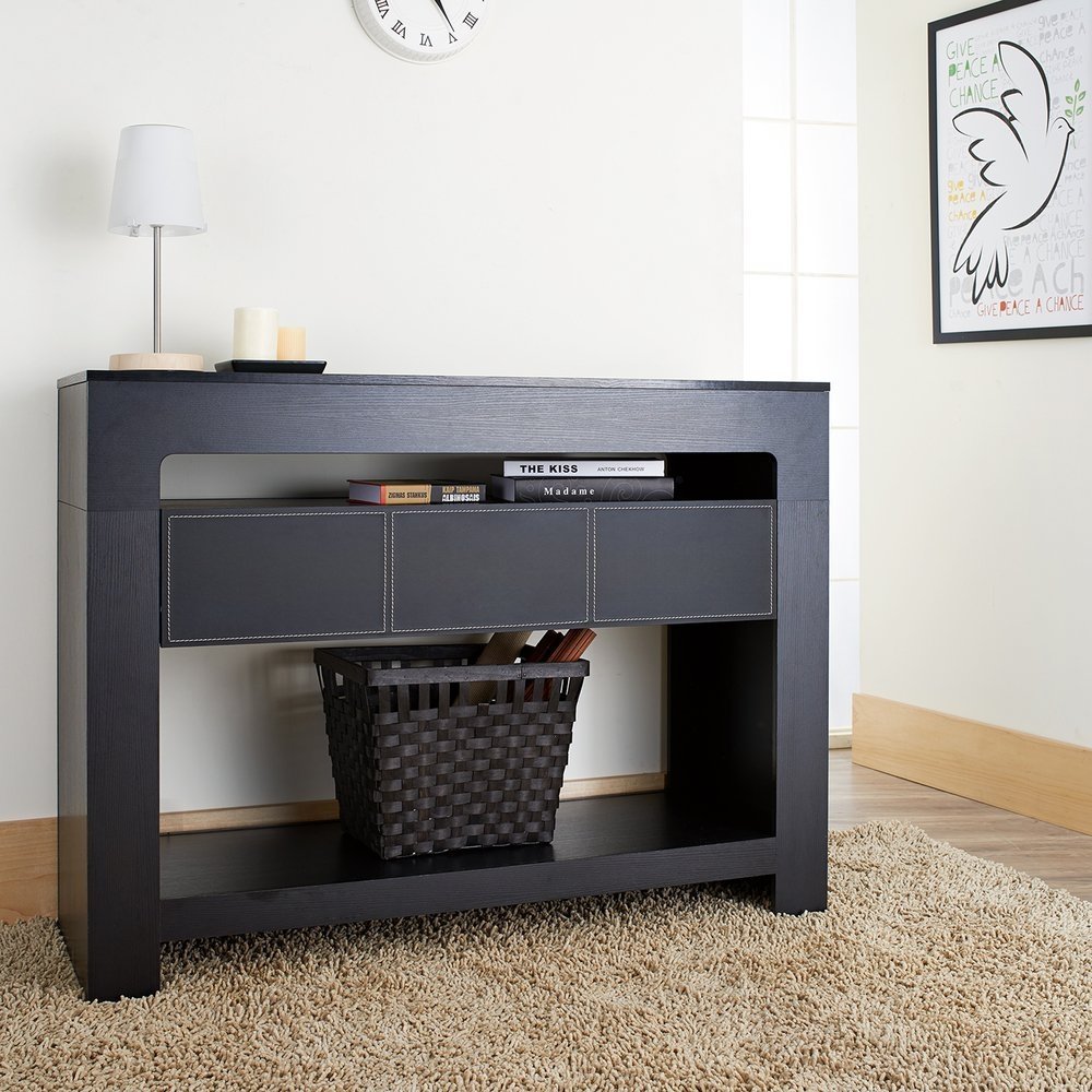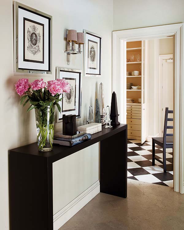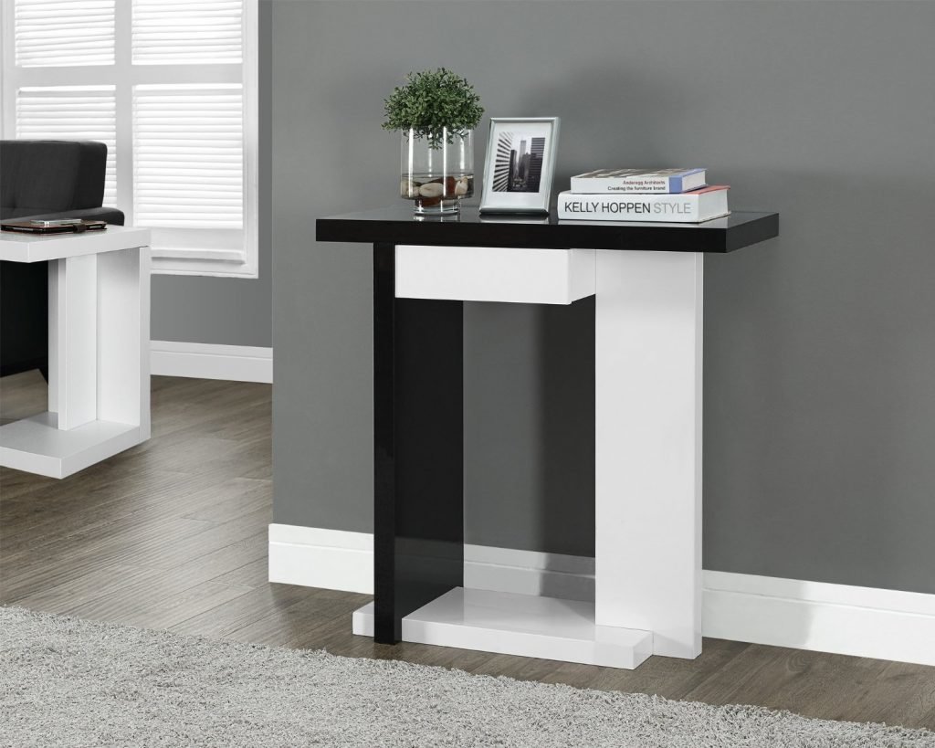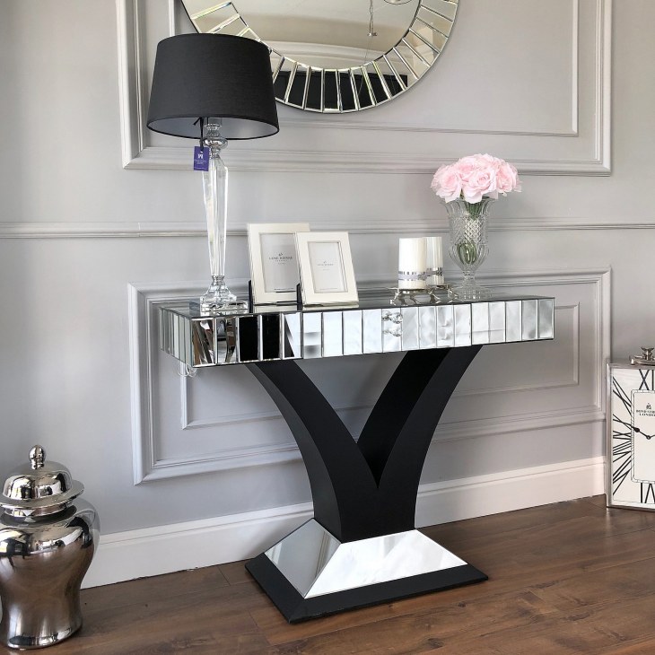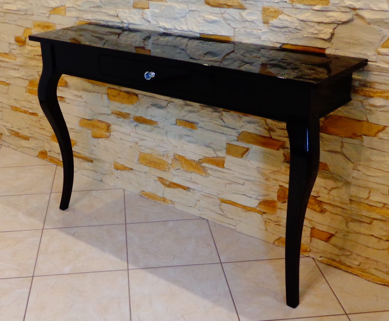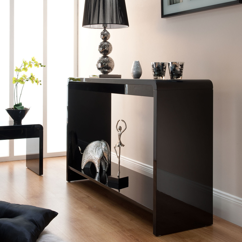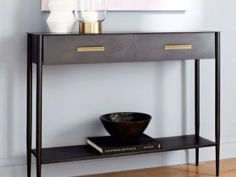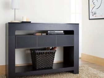 Les consoles sont intéressantes en noir - à la fois avec des surfaces mates et brillantes. Une telle console sera une excellente pièce maîtresse dans un intérieur lumineux.