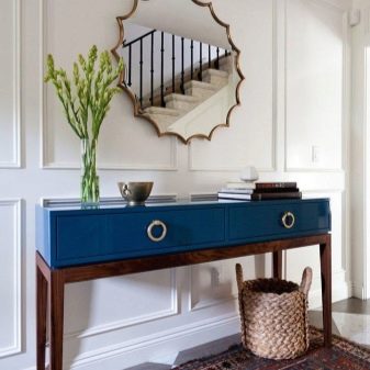 Le mobilier moderne dans le couloir est diversifié. L'une des solutions intéressantes est la console, qui s'adapte facilement à n'importe quel style d'intérieur. Les concepteurs et les utilisateurs aiment ce meuble pour sa large fonctionnalité. Avec un élément aussi original, le couloir acquiert rapidement de l'expressivité et se remplit d'individualité.